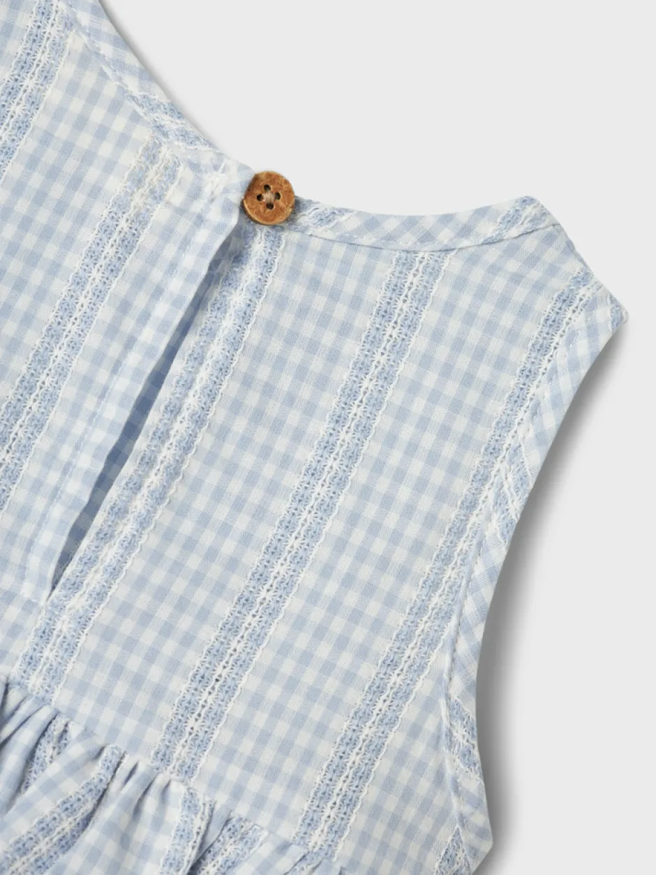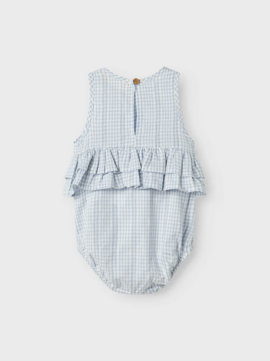Giv din lille pige et charmerende sommerlook med denne yndige sommerdragt, der har smukke flæser og en praktisk bodystocking funktion. Denne dragt er perfekt til varme sommerdage, hvor komfort og stil går hånd i hånd. Lavet af let og åndbart materiale, sikrer den en behagelig pasform hele dagen.