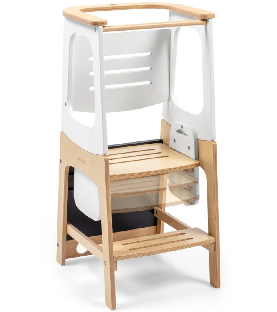 Lad dit barns uafhængighed svæve med Maxi-Cosi Toucan, et 3-i-1 læringstårn inspireret af Montessori-principper, der giver din lille mulighed for at lære gennem udforskning. Fra køkkenhjælper til aspirerende kunstner, Toucans 3-i-1-design åbner en verden af muligheder for din lille. Deltag i køkkensjov i læringstårntilstand, slip deres kreativitet løs på den integrerede tavle i bord- og stoltilstand, og se dem nå nye højder med muligheden for trædeskammel. Toucan 3-i-1 læringstårnet giver den ideelle platform for dit lille barn, når de deltager i familieaktiviteter rundt omkring i hjemmet. Den justerbare højde sikrer, at dit barn altid kan nå bordpladen sikkert og komfortabelt, mens den integrerede tavle giver dit barn et kreativt udløb. Uanset om det bruges som skammel eller i bord- og stoletilstand, har din lille et behageligt sted for sig selv, hvor de kan slappe af, udtrykke deres kreativitet eller tage del i, hvad der sker omkring dem.