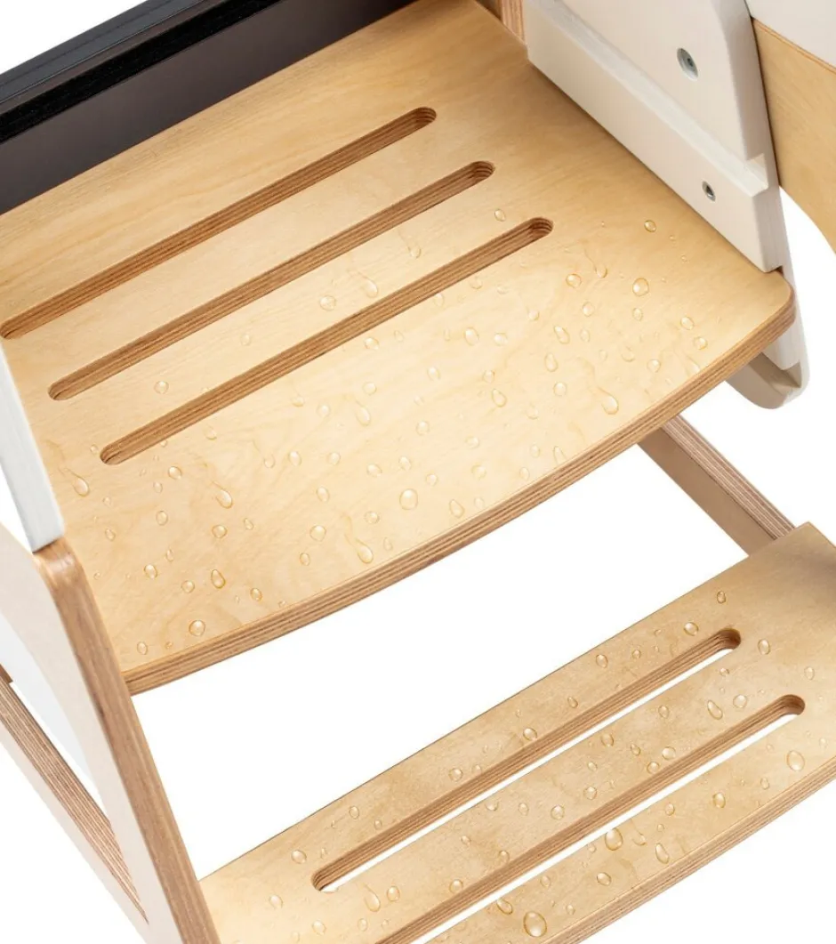 Toucan er nem at bruge for både forældre og børn. Skift mellem tilstande er enkelt; en hurtig rotation forvandler Toucan fra et læringstårn til et bord- og stolesæt. Når dit lille barn er vokset ud af læringstårnet, kan du tage det af for at forvandle det til en trædeskammel i træ. Toucans alsidige 3-i-1 design giver dit barn mulighed for at tackle en lang række opgaver, lige fra at nå køkkenbordplader til at børste deres egne tænder. For forældre er det nemt at holde Toucan ren takket være dens beskyttende og vandafvisende finish.