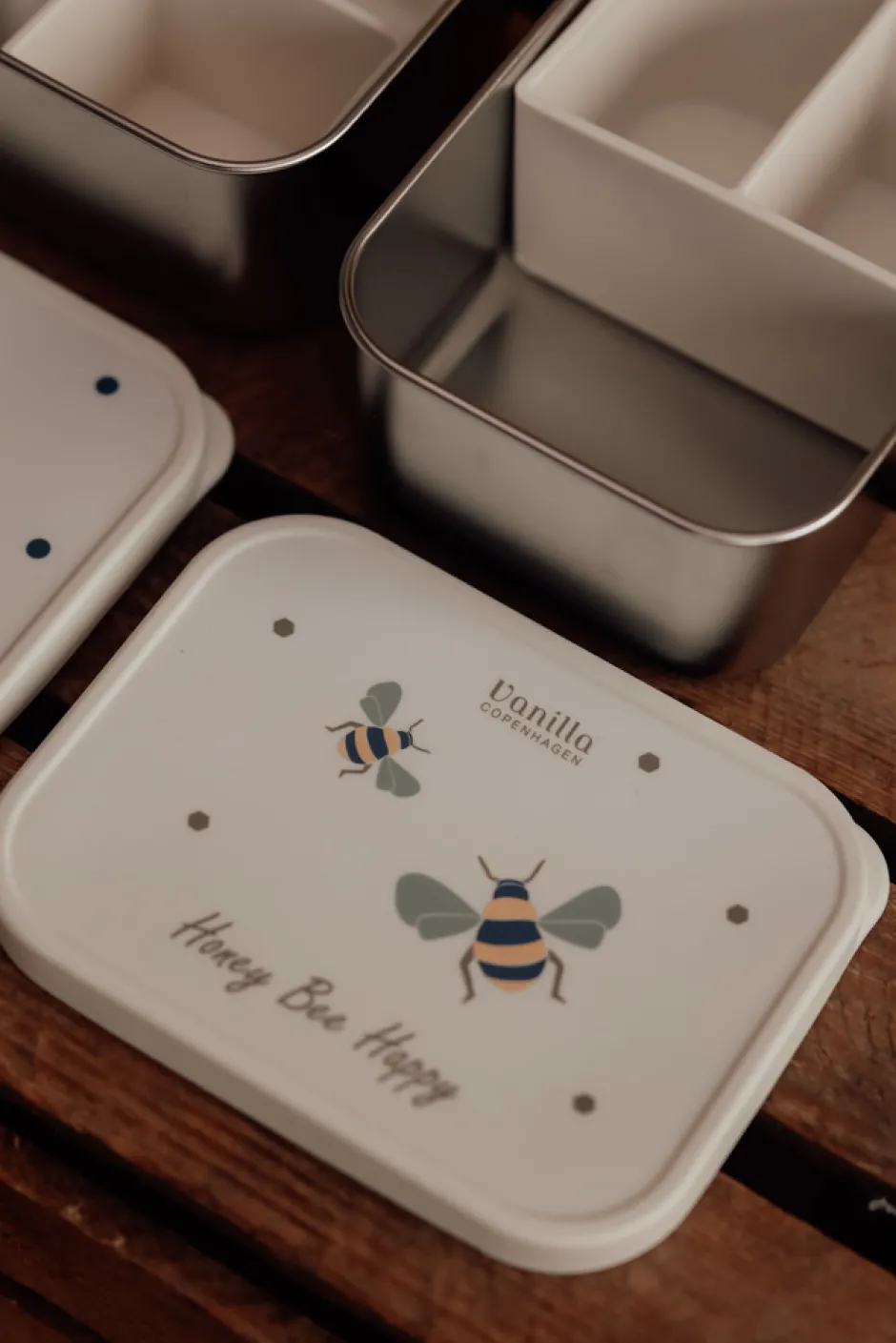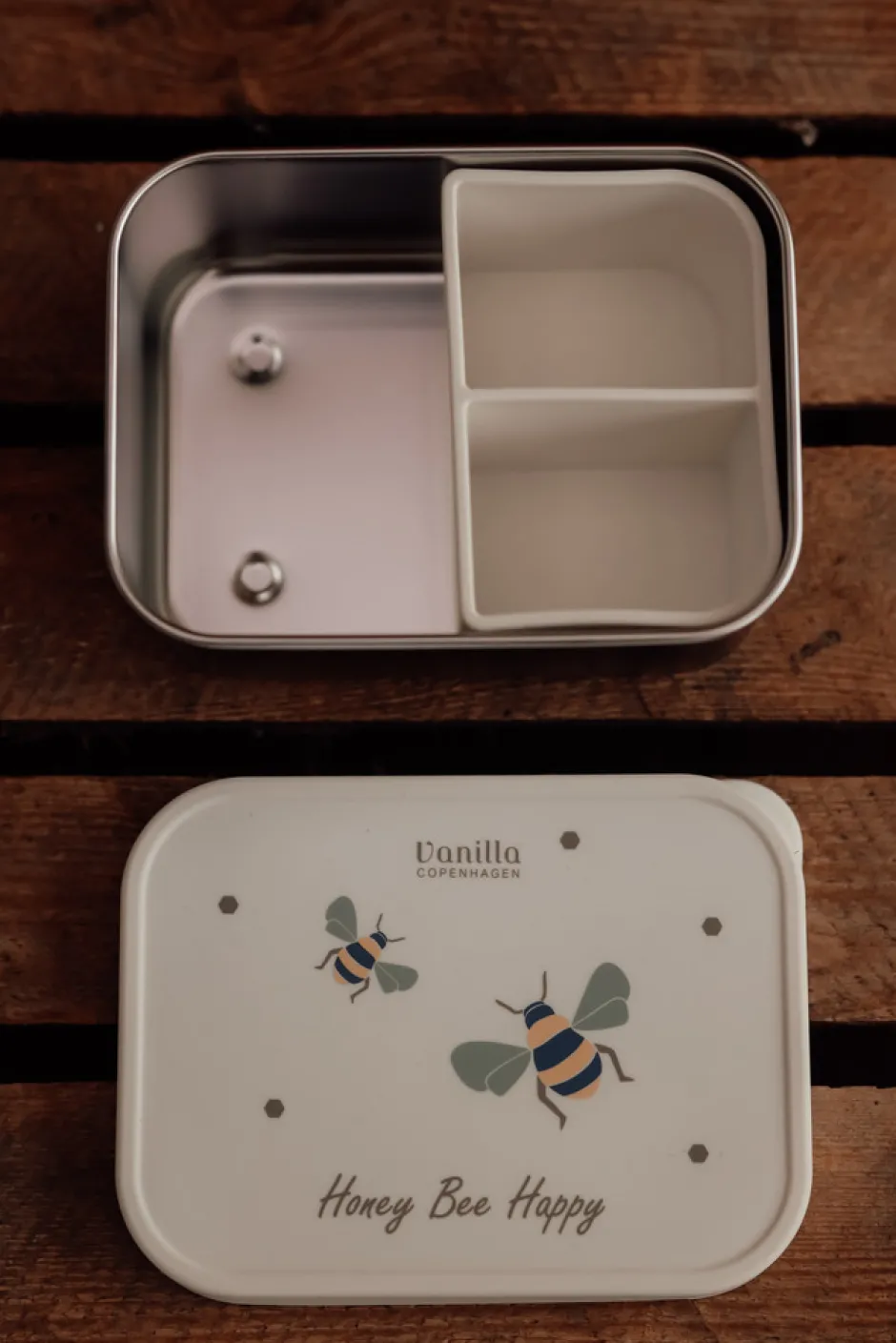 Vanilla Copenhagen madkasse i rustfrit stål / silikonelåg- og rumdeler – 1000 ml