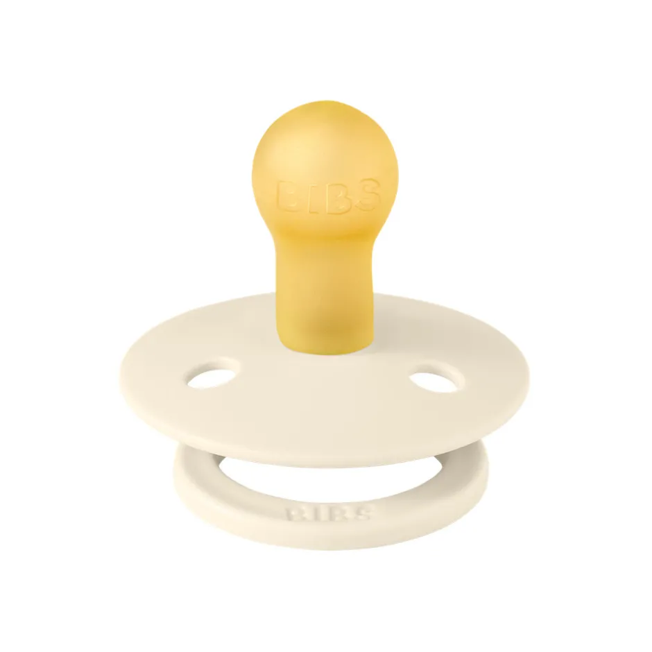 Sutten har det karakteristiske runde BIBS-skjold med tre udluftningshuller og en rund BIBS-indgraveret ring. Den er udstyret med en rund nipple i naturgummilateks, som understøtter en naturlig sutteteknik.