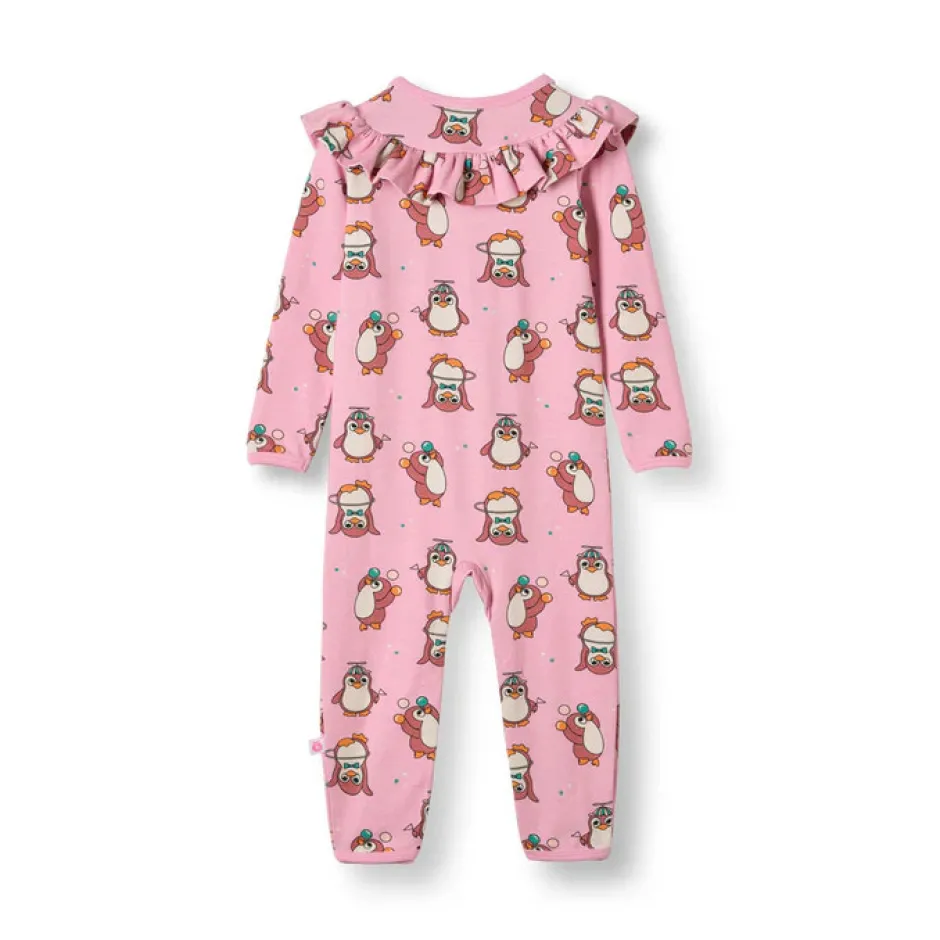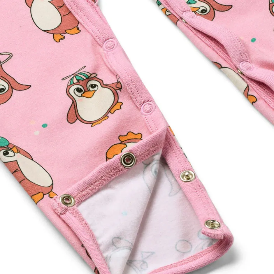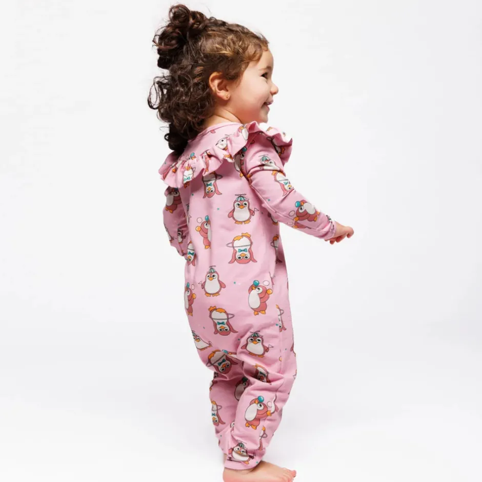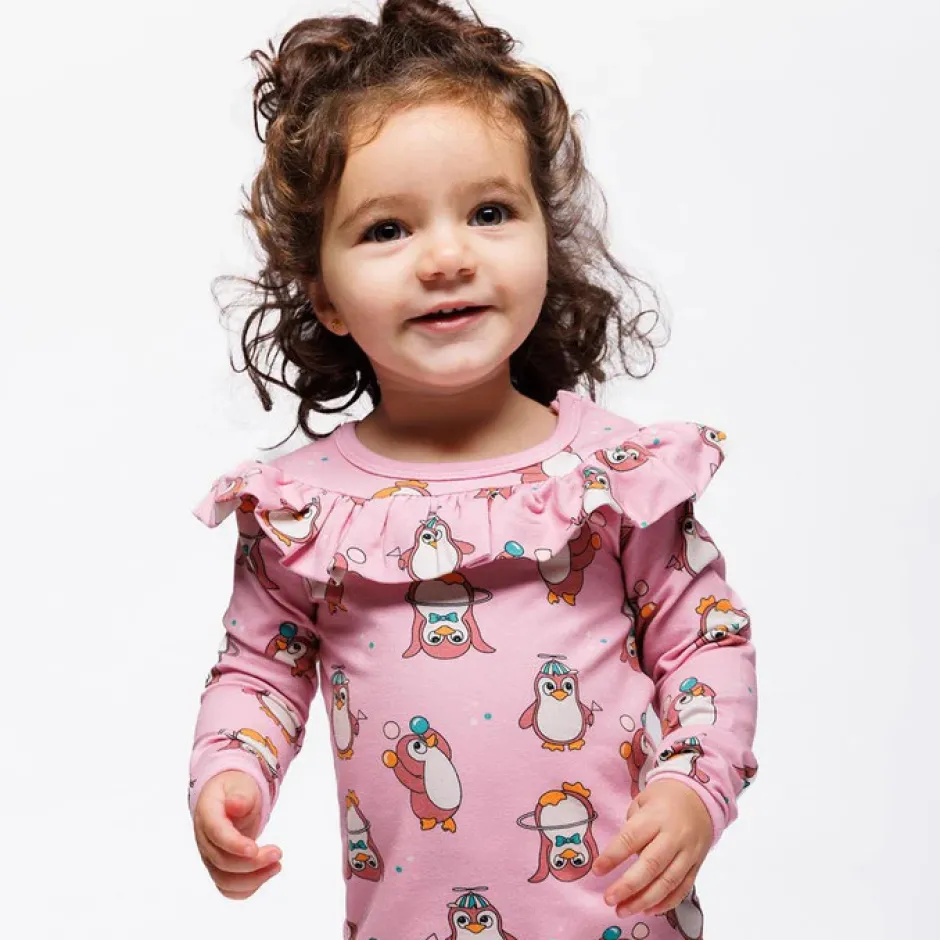 Lad legesyge cirkuspingviner tilføje et strejf af lune og charme til din babys outfit. Småfolks print er håndtegnede og designet med fokus på glade farver, detaljer og historier. Vores babydragter er en fantastisk måde at tilføje personlighed til dit barns garderobe, samtidig med at dit barn holder sig komfortabelt hele dagen.