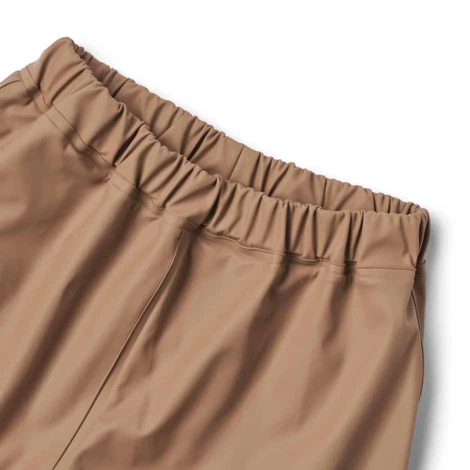 Wheats praktiske regntøj er en essentiel del af dit barns garderobe. Det er lavet i et superblødt og let materiale, der gør det behageligt for dit barn at have på og bevæge sig i. Det er vandtæt og smudsafvisende, og er derfor let at rengøre med en våd klud efter en mudret eftermiddag på legepladsen.Regnbukserne har elastik i taljen og ben kanten for at sikre en god pasform samt gummistropper under fødderne. Bukserne har en matchende jakke, så du kan få det komplette regntøjssæt. Sættet fås i smukke farver og håndtegnede prints lavet af Hvedes interne designteam, og er let at bære med Hvedes termoundertøj på koldere dage.