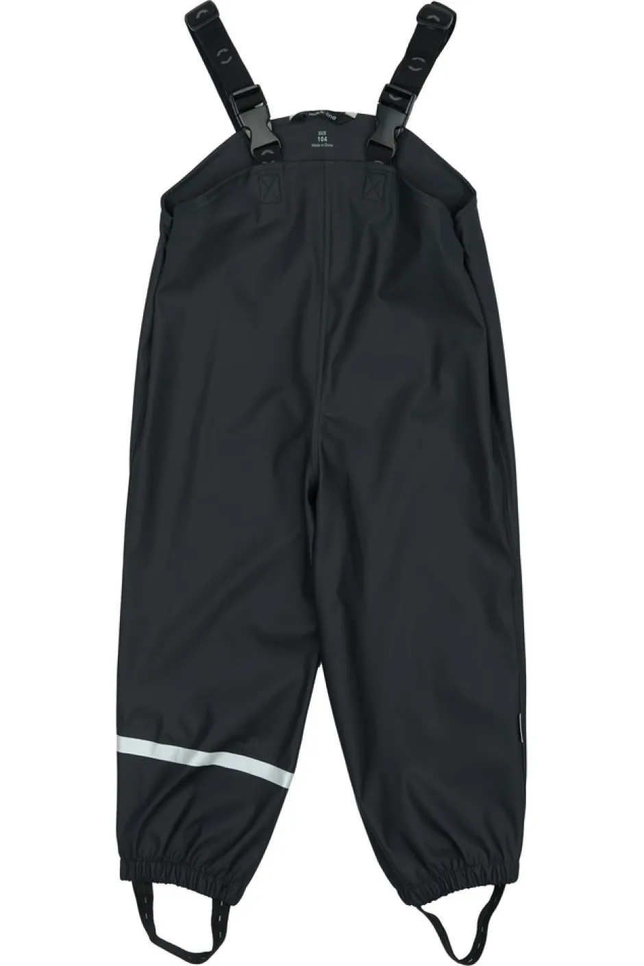 Placer de justerbare fodstropper under støvlerne, for at holde fødderne tørre og undgå at bukserne glider op. Selerne kan tilpasses efter behov, og så har sættet har et indvendigt navneskilt med plads til mere end ét navn, så giv det gerne videre, så endnu et barn kan få glæde af det.