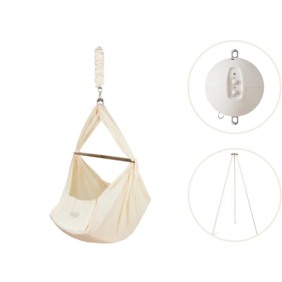 Stativ: Stilfuldt, sikkert og enkelt – med et Moonboon stativ kan du fastgøre din vugge eller slyngevugge, hvor du vil, så du altid kan holde øje med din sovende baby. Dette specialdesignede stativ er fremstillet i overensstemmelse med de strengeste europæiske sikkerhedsstandarder, så du kan være sikker på, at dit barn sover trygt og godt, så længe det har brug for det. Med tre ben i slanke, runde profiler er stativet let at samle og pakke væk, når det ikke er i brug, hvilket gør det både alsidigt og bærbart. Stativet er 194 cm højt og kan holde en vugge eller slyngevugge samt en vuggemotor.