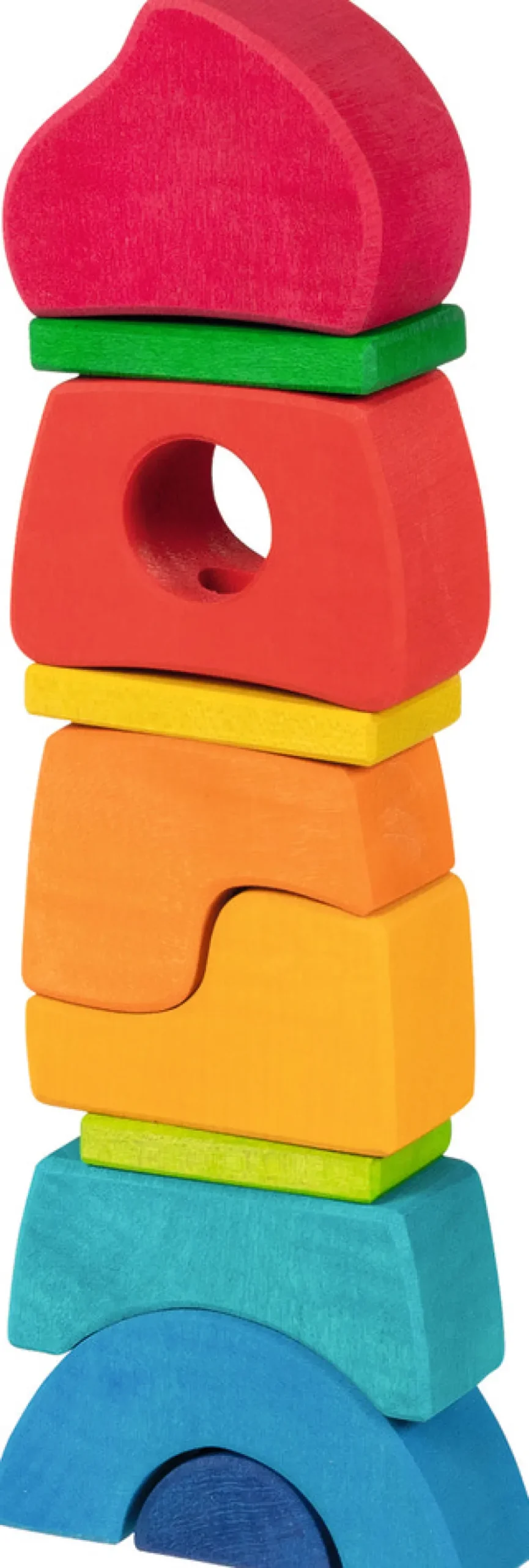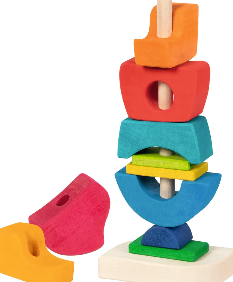 Vores stabelslot åbner nye muligheder for stabling og sortering. De forskelligt formede byggeklodser kan være stablet på træstangen, men de er også velegnede til