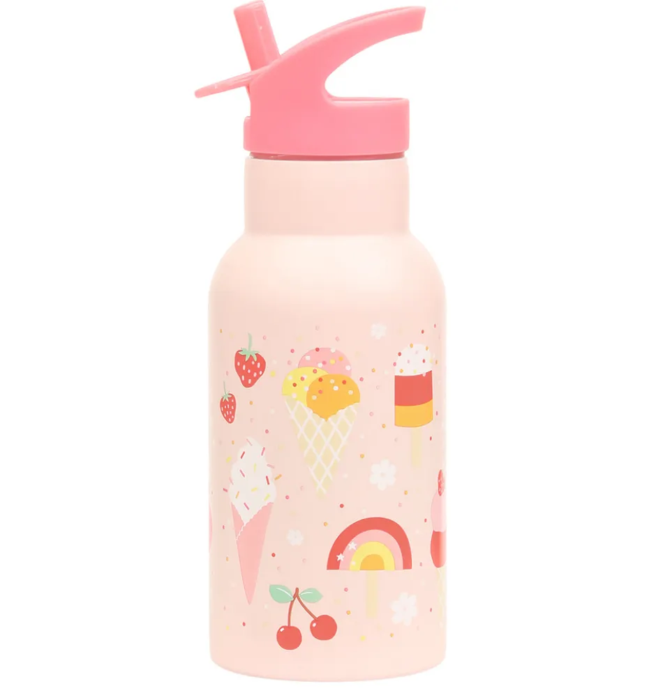 Perfekt til børnehave, skole eller på farten og er velegnet til både kolde og varme drikke. Drikkeflasken kommer som standard med et sportslåg (sugerørslåg), der er let at åbne og lukker helt tæt når drikketuden er skubbet tilbage.