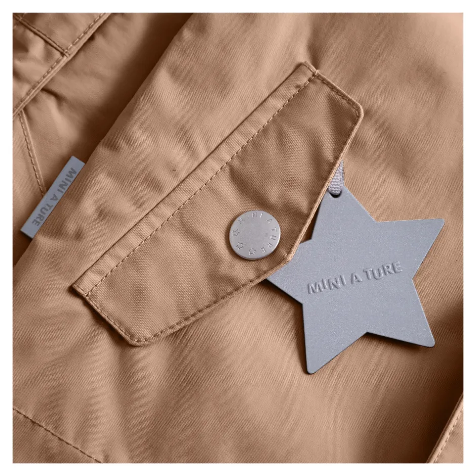 Ikonisk MINI A TURE jakke med 10 års garanti til de mindre børn. Jakken har to forlommer og centreret lynlås fortil. Den har indvendig justerbar talje, så den er nem at tilpasse det enkelte barn samt aftagelig rund hætte med trykknapper. Størrelser til og med 18m/86 har rib rundt i halsen, mens størrelserne opefter har en almindelig krave. MINI A TURE stjernerefleks findes i lommen, og jakken har et mindre reflekslogo bag på.