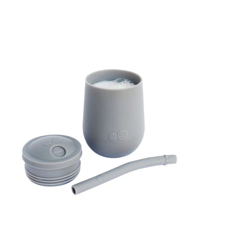 Super smart begyndersæt fra Ezpz produceret af 100% lækker blød fødevaregodkendt silikone. Koppen kan bruges med eller uden låg samt med det medfølgende sugerør. Perfekt afstemt størrelse til de små, som nemt kan holde om koppen. Det smarte sugerør har små sanseknopper og et lille knæk som gør det nemmere for barnet at lære at drikke af sugerør. Når barnet mestre at anvende sugerøret, kan dette vendes så det vender lige op. At lære at drikke af en åben kop er vigtigt, da det udvikler læbefunktionen og sprogudviklingen, og er med til at give barnet en god overgang i selvstændig spisning. Designet til små børn fra 12 mdrs. alderen.