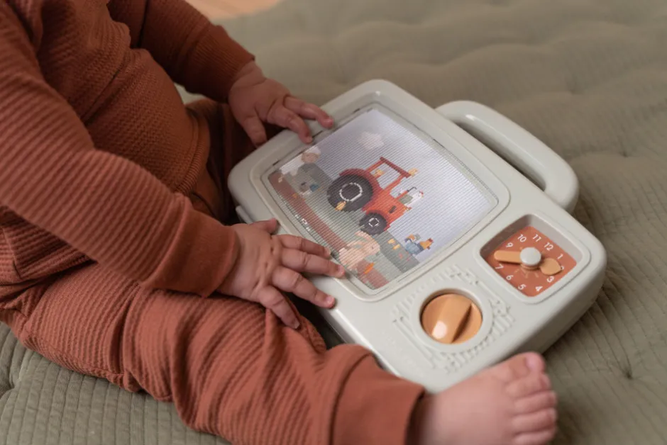 Drej på knappen på dette søde Little Dutch Musik TV, og billedet skifter langsomt, mens du hører munter musik. Se husdyrene fra Little Dutch Farm-serien