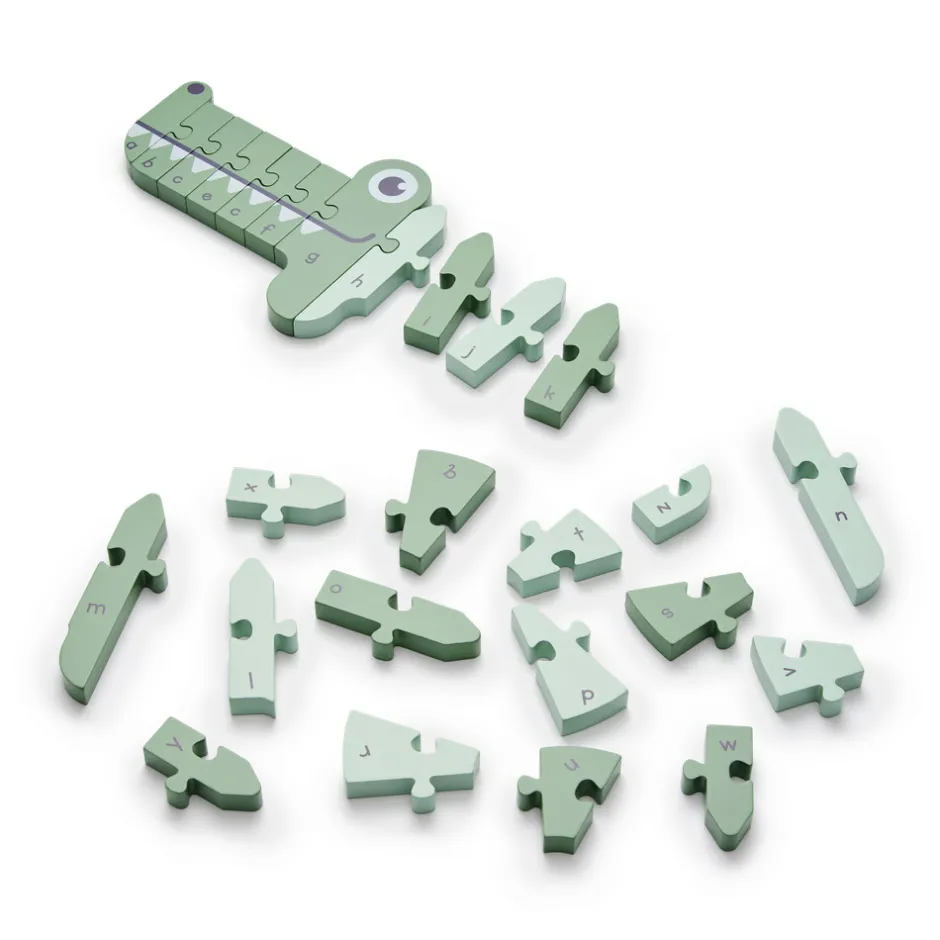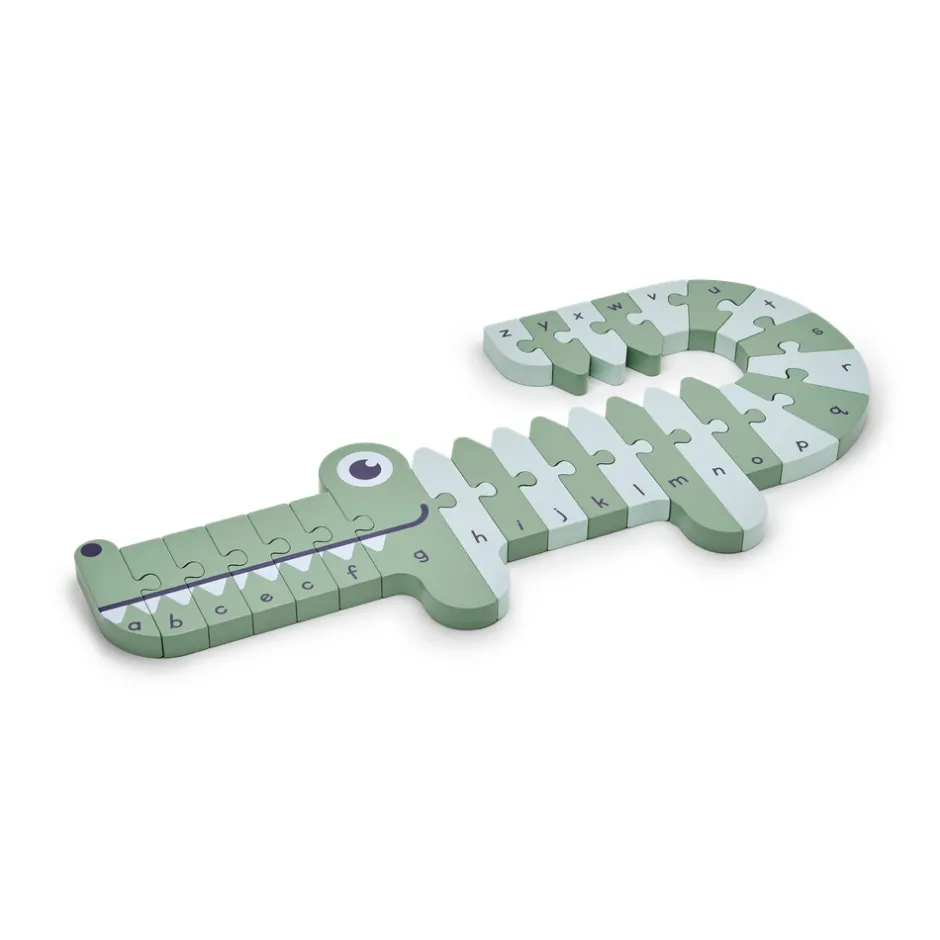 A,B,C, puslespil formet som en fin grøn krokodille, perfekt til at udvide barnets færdigheder.