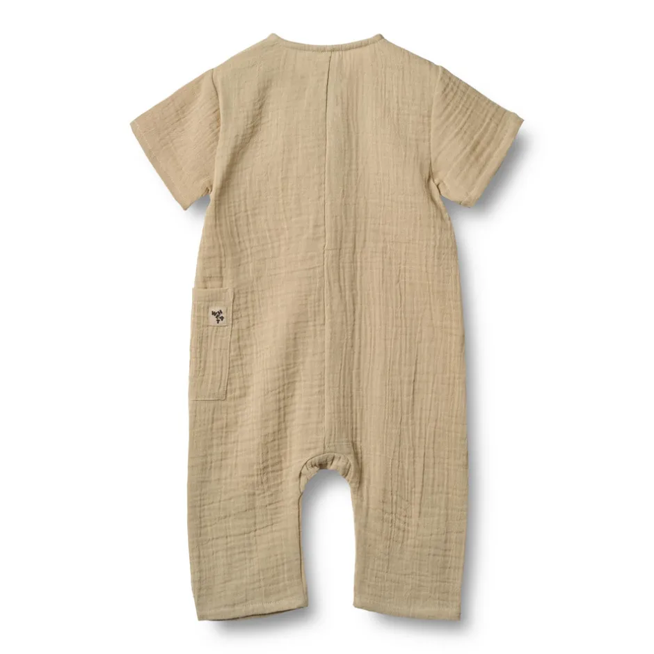 Kortærmet romper i blød økologisk bomulds gasbind til babyer.