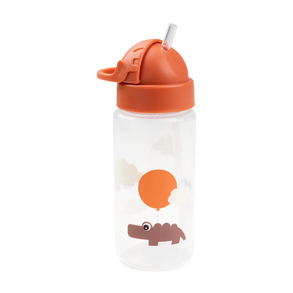Den søde Happy clouds drikkedunk med sugerør passer perfekt til ungernes rygsæk. Drikkeflasken har et smart sugerør, der kan gemmes i låget og forhindrer at væske spildes. Håndtaget hjælper de små hænder med at finde sugerøret frem igen. Den spildfrie børnedrikkeflaske er uundværlig på farten og gør det sjovt for barnet at drikke masser af vand. Et ekstra sugerør og mundstykke er inkluderet. Croco, Birdee og Ozzo pynter på drikkedunken i grønne og blå nuancer.