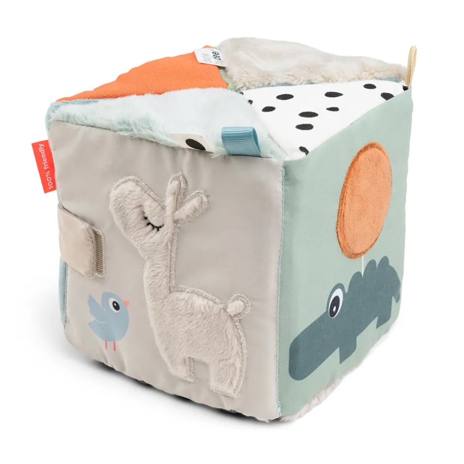 • Luk med velcro og brug den som en terning til at motivere dit barn til at kravle, eller hvis du vil tage den med