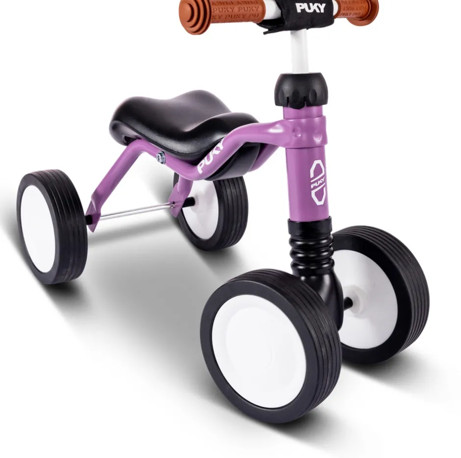 Den forreste svingaksel på PUKY® WUTSCH® muliggør en flad styrevinkel, hvilket stabiliserer køretøjet ved mindre forhindringer. Børn fra 1½ år, der allerede kan gå sikkert, kan også trygt bevæge sig på mindre jævne overflader.