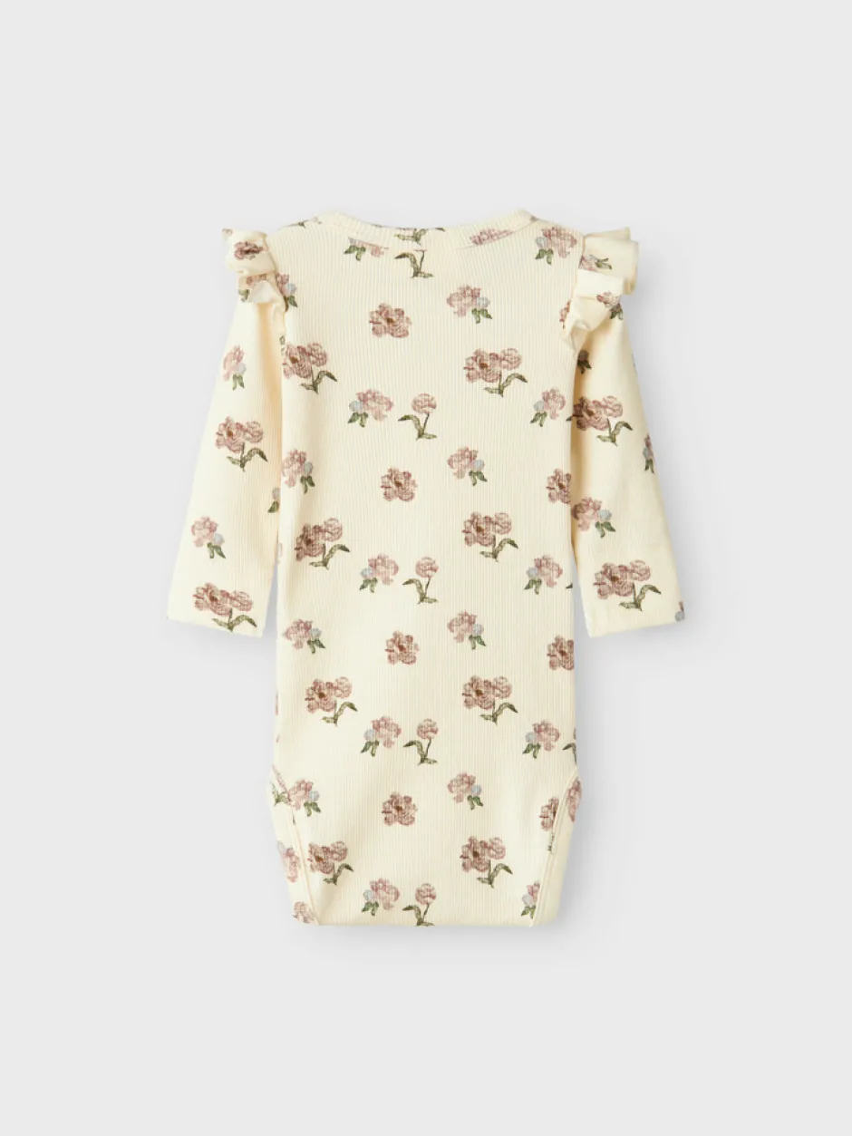 Giv dit barns garderobe et løft med en blød og stilfuld body– perfekt til hverdagsbrug med et moderne twist. Denne body er lavet i let og elastisk jersey, som føles blød mod huden og giver optimal bevægelsesfrihed. Designet kombinerer funktion og finesse med fine flæsedetaljer, en klassisk bedstefarhals og praktiske trykknapper, der gør påklædningen nem og bekvem.