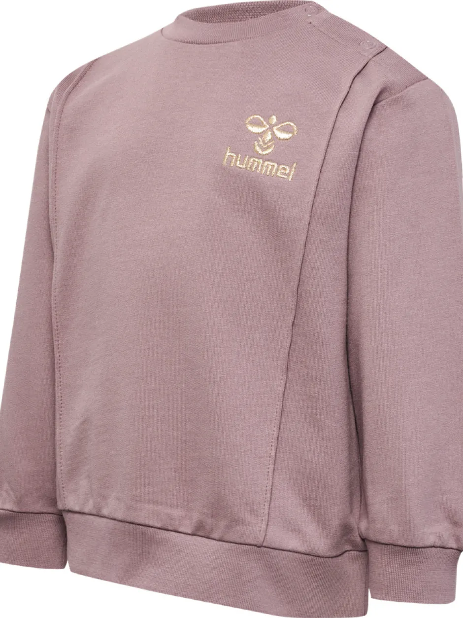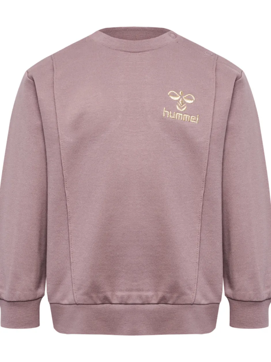 HELLE SWEATSHIRT er en behagelig mulighed for familiens mindste med blød bomuldssweat fremstillet af økologisk bomuld. Denne sweatshirt har rund hals og et iøjnefaldende broderet logo med metallic detaljer på brystet.
