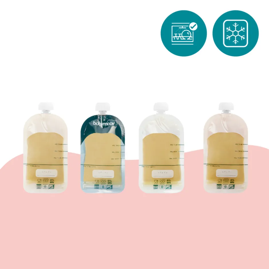 Fra en alder af 6 måneder vil din baby være begyndt at udforske forskellige smage og nye teksturer. De vil være mere fortrolige med deres måltidsredskaber og klar til at udforske forskellige måder at spise på. Denne pakke med 20 genanvendelige 150 ml poser betyder, at du kan introducere din baby til blandt andet grød, mos og smoothie! De er nemme at bruge med deres brede åbning i bunden, og har en helt lufttæt lynlås. Disse ISY klemposer er ekstremt praktiske til udflugter og er nemme at medbringe når I skal på tur. De har en overflade som kan skrives på, så du altid kan se, hvad der er indeni.
