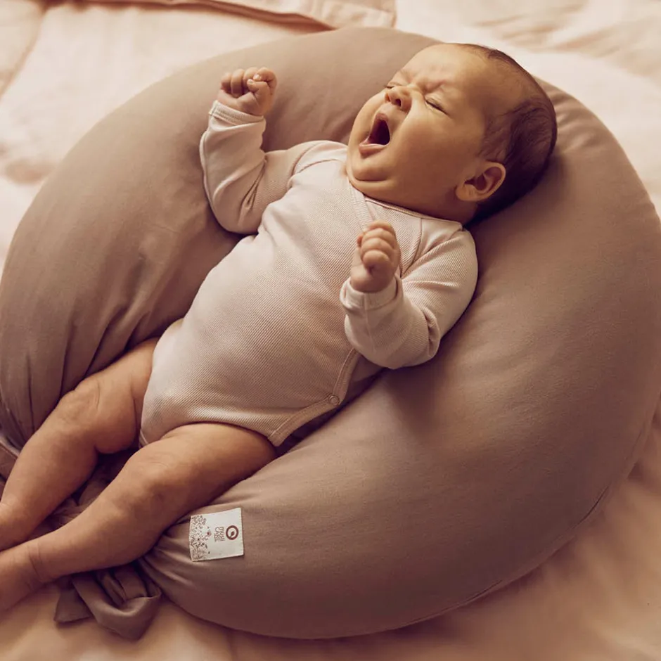 Skøn og praktisk pude som kan bruges til amning eller når der gives flaske. Puden er designet således at den kan bindes rund om maven så baby kan ligge behageligt i flere stillinger. Puden bindes efter behov så den tilpasses den enkelte krop. Puden kan også anvendes til nakketræning hvor barnet placeres med armene over pudens kant. Puden er også behagelig at sidde i, da siderne kan støtte baby. Puden har en skjult lynlås på indersiden som gør at betrækket kan tages af og vaskes. Der er et inder-foer i puden så det er let at få betrækket på igen. Kapok ammepuden er lavet af rene plantefibre og er perfekte for folk med allergier, derudover er den også GOTS certificeret, betrækket er 100% økologisk GOTS certificeret bomuld og fyldet er 100% økologisk kapok.