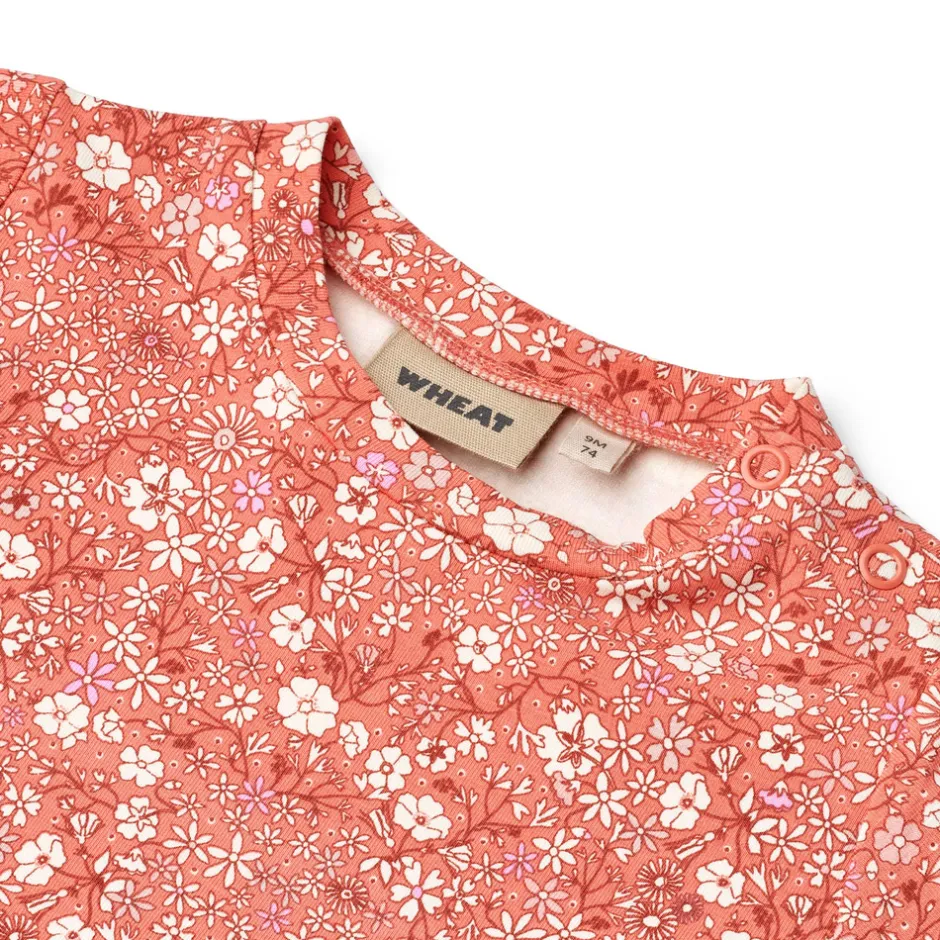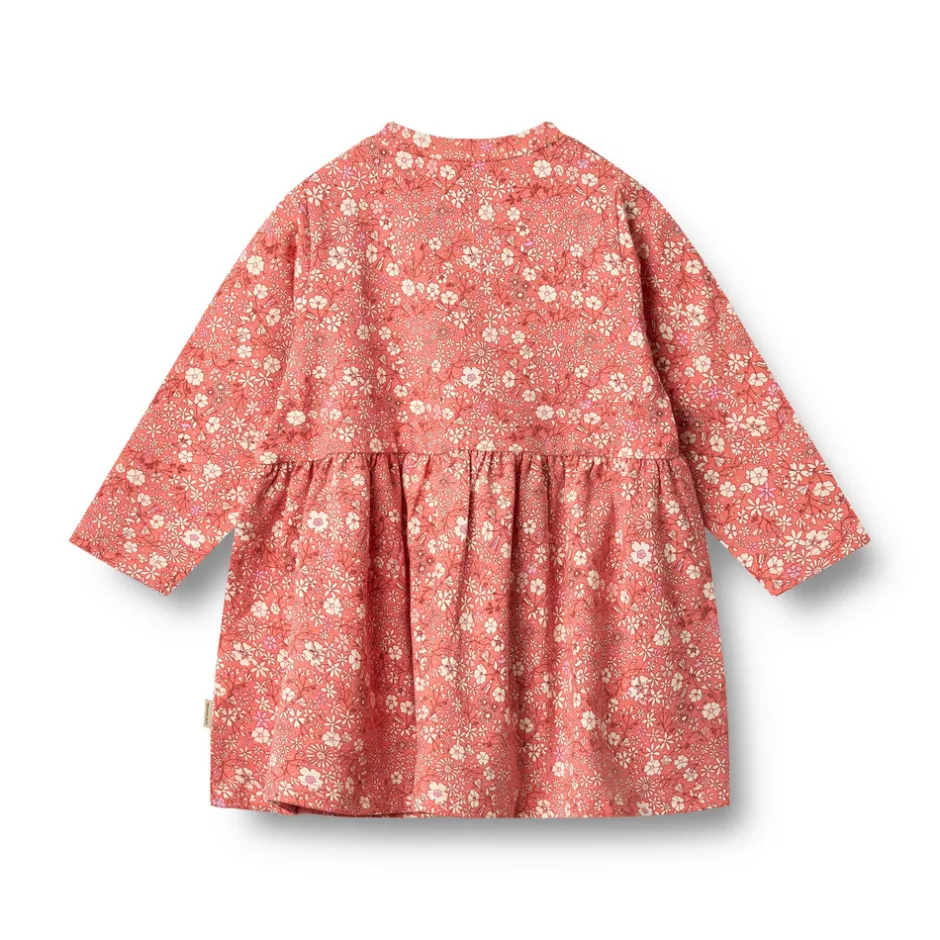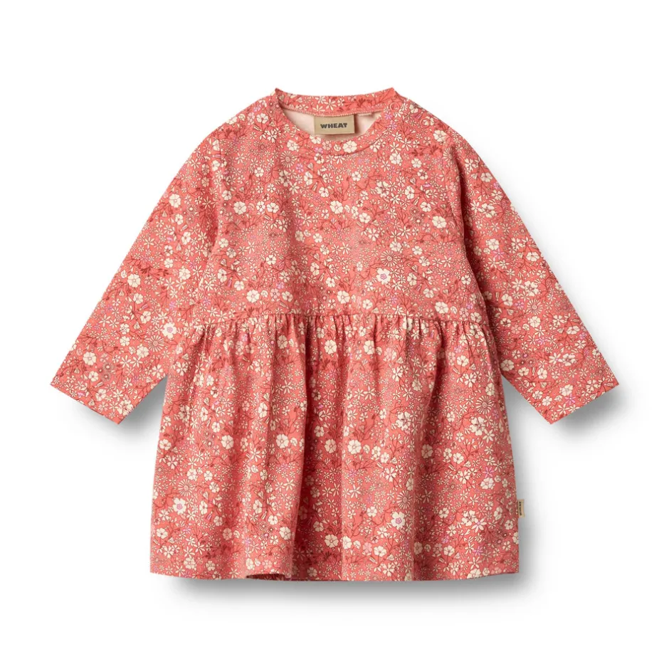 Wheat’s sød kjole har en løs pasform, hvilket gør det let og behageligt for din baby at have den på. Kjolen har en flatterende snitlinje med samlinger, hvilket giver kjolen en dejlig fylde. Den har trykknapper på skulderen, hvilket gør det lettere for dig at klæde din baby på.