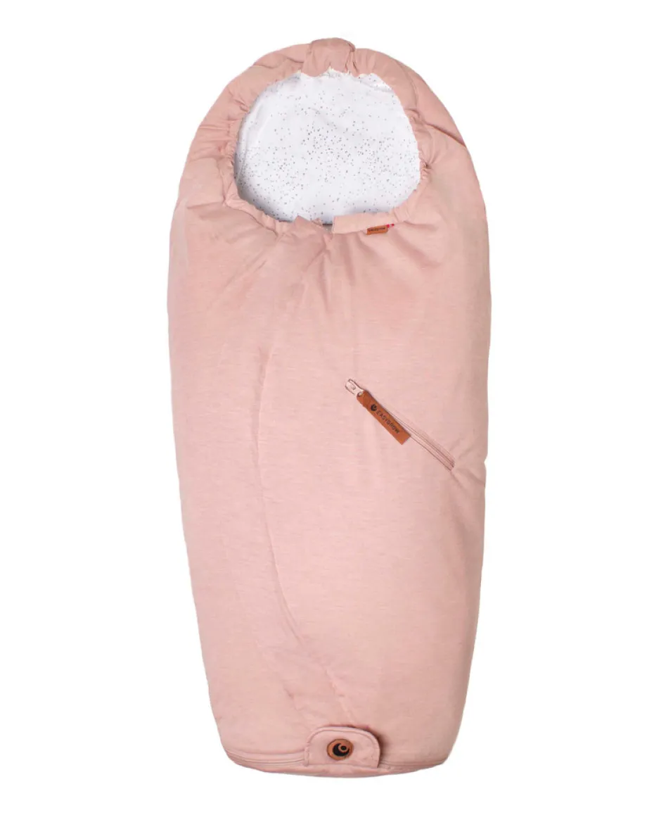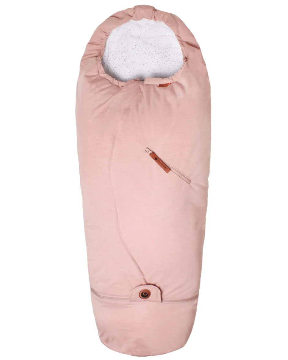 Køreposen er lavet af genbrugsmaterialer og økologisk viskose af bambus. Posen kan forlænges og har således en lang levetid.