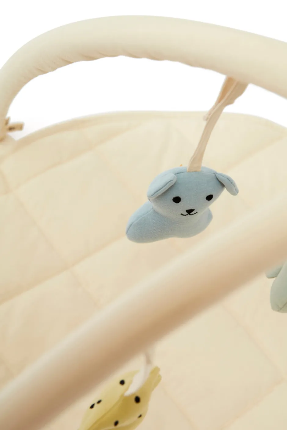 Placeres enkelt og kan bruges overalt, hvor barnet har brug for lidt underholdning og stimulering til babyen, i barnevognen, ved autostolen eller over puslebordet.