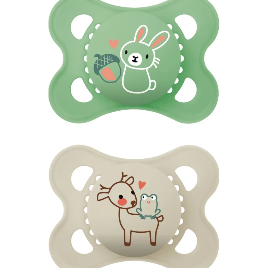 En klassisk sut, der er skånsom mod huden takket være de store lufthuller og den knoprede inderside. Sugedelen er lavet af silkeblød silikone, MAM Skin SoftTM, som føles blød og velkendt ligesom mors hud og accepteres af 94% af babyerne*. MAM Original leveres i en praktisk opbevarings- og steriliseringsæske, som gør det nemt at sterilisere sutterne i mikrobølgeovnen.