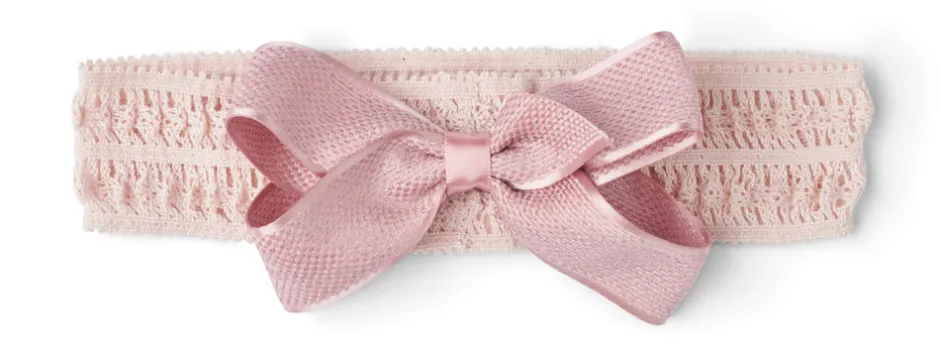 Mat gammelrosa blonde elastikbånd med pynte sløjfe i riflet satin