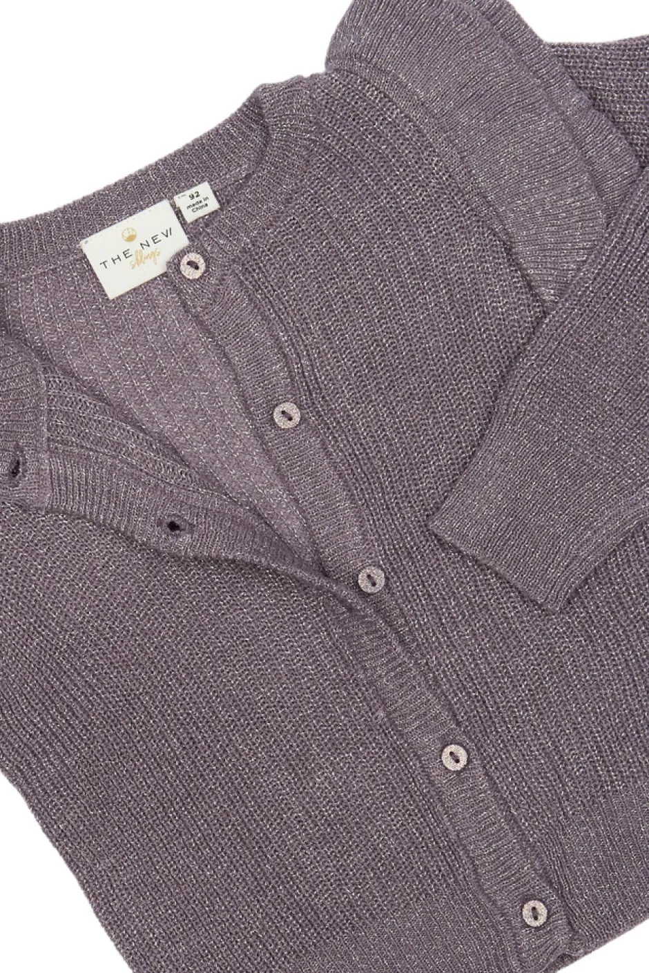 Strikket cardigan fra THE NEW siblings med en smuk flæse detalje på skulderen. Stoffet har glimmer i sig, hvilket gør den meget feminin og elegant. For at lukke cardiganen er der syet fine naturknapper på. Alle kanter på cardiganen er afsluttet med ribkanter, hvilket tilføjer komfort. Det er en blød og alsidig cardigan, der kan løfte hverdagsoutfits eller bæres som en del af et festligt sæt til særlige lejligheder.