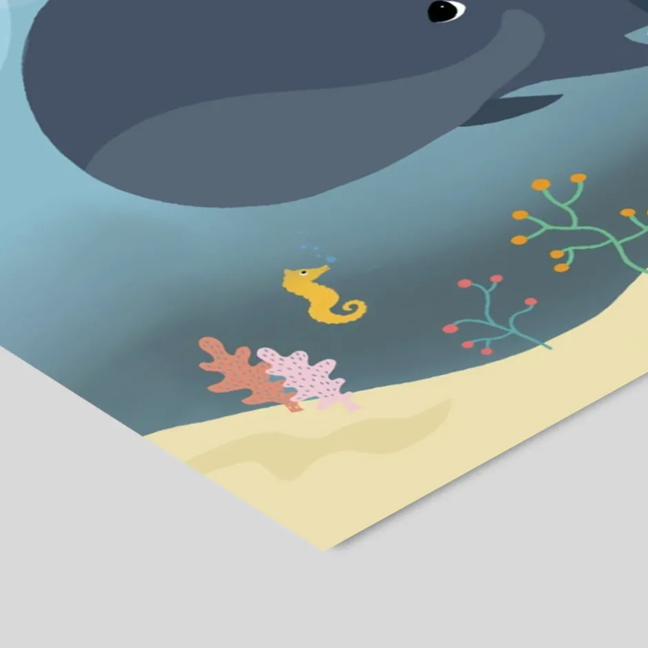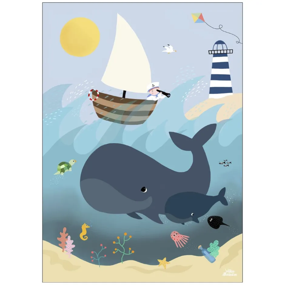 Giv børneværelset et eventyrligt præg med denne charmerende plakat “Hvaler og bølger” fra Poster & Frame. Plakaten byder på et farverigt og fantasifuldt motiv med glade hvaler, bølger, et sejlskib, fyrtårn og sjove havdyr, der sammen skaber en livlig og inspirerende stemning. Den store A3-størrelse gør plakaten til et flot blikfang, der både kan hænge alene eller kombineres med andre plakater for et personligt udtryk. Motivet er trykt på kvalitetsmateriale, så farverne fremstår klare og indbydende. Perfekt som gaveidé eller til at skabe hygge og glæde på børneværelset.