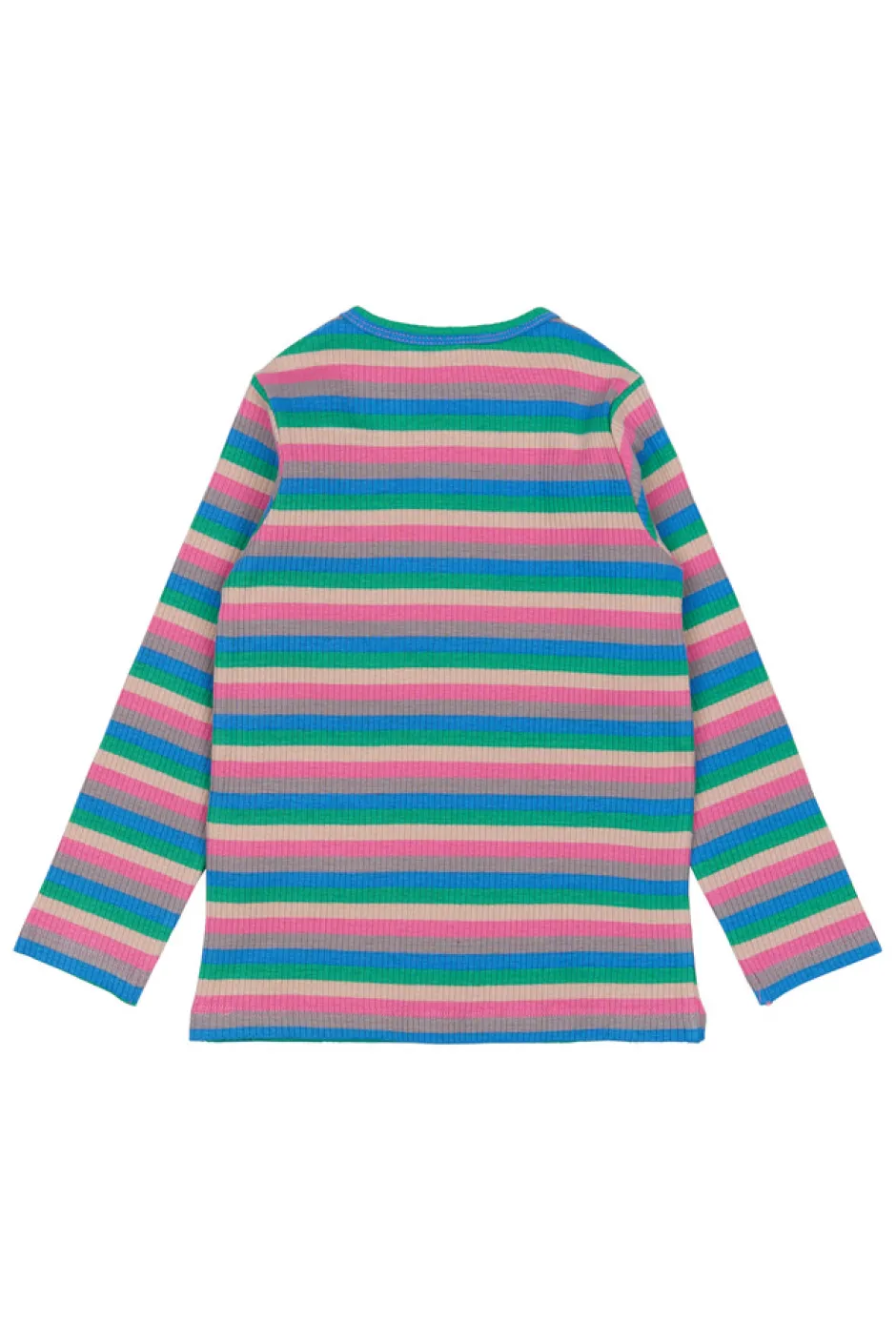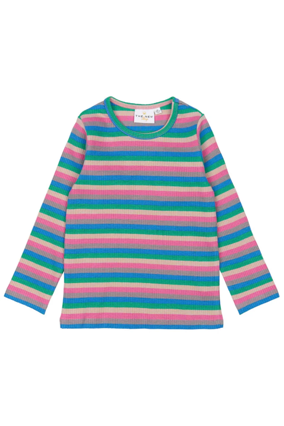 Langærmet ribbet t-shirt med farverige striber. Denne alsidige basis-t-shirt fra THE NEW siblings kombinerer levende farver med et enkelt design, hvilket gør den perfekt til både hverdagsbrug og særlige lejligheder.