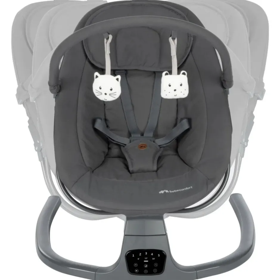 Indstil gyngetiden til 8, 15 eller 30 minutter, så du kan tilpasse oplevelsen til din babys rytme. Den medfølgende legebue med to søde vedhæng stimulerer sanserne og opmuntrer til leg og nysgerrighed.
