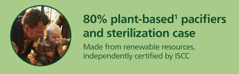 Det medfølgende etui fungerer både til opbevaring og som sterilisator. Du skal blot tilsætte lidt vand til etuiet, så kan sutterne steriliseres i mikrobølgeovnen på kun 3 minutter – perfekt til travle forældre på farten! En yderligere faktor er miljøvenligehden med brugen af 80 % plantebaserede materialer*, som er skånsomme mod planeten og tilføjer en miljøvenlig dimension til det fantastiske produkt.