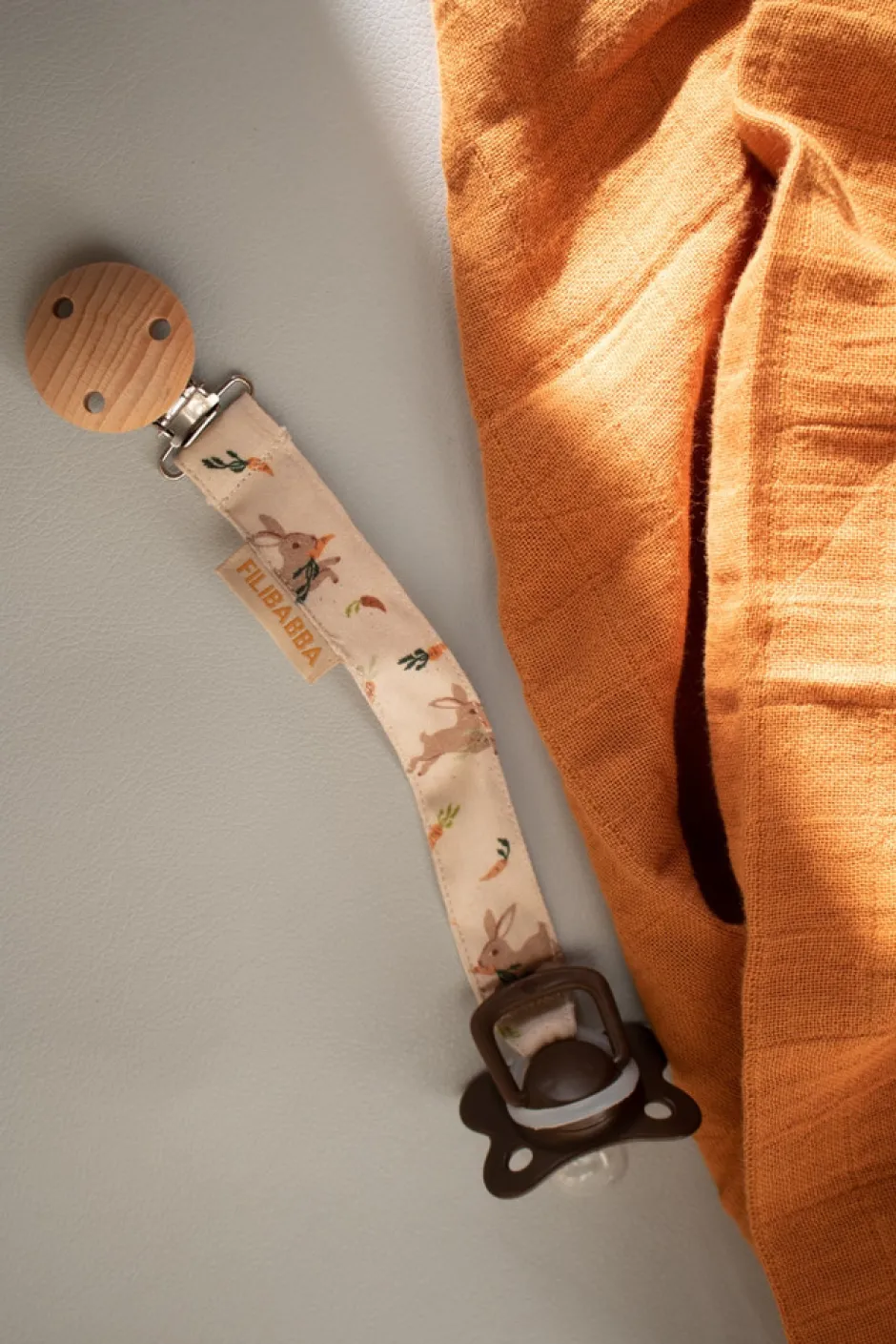 Denne praktiske suttesnor er produceret i GOTS-certificeret økologisk bomuld.