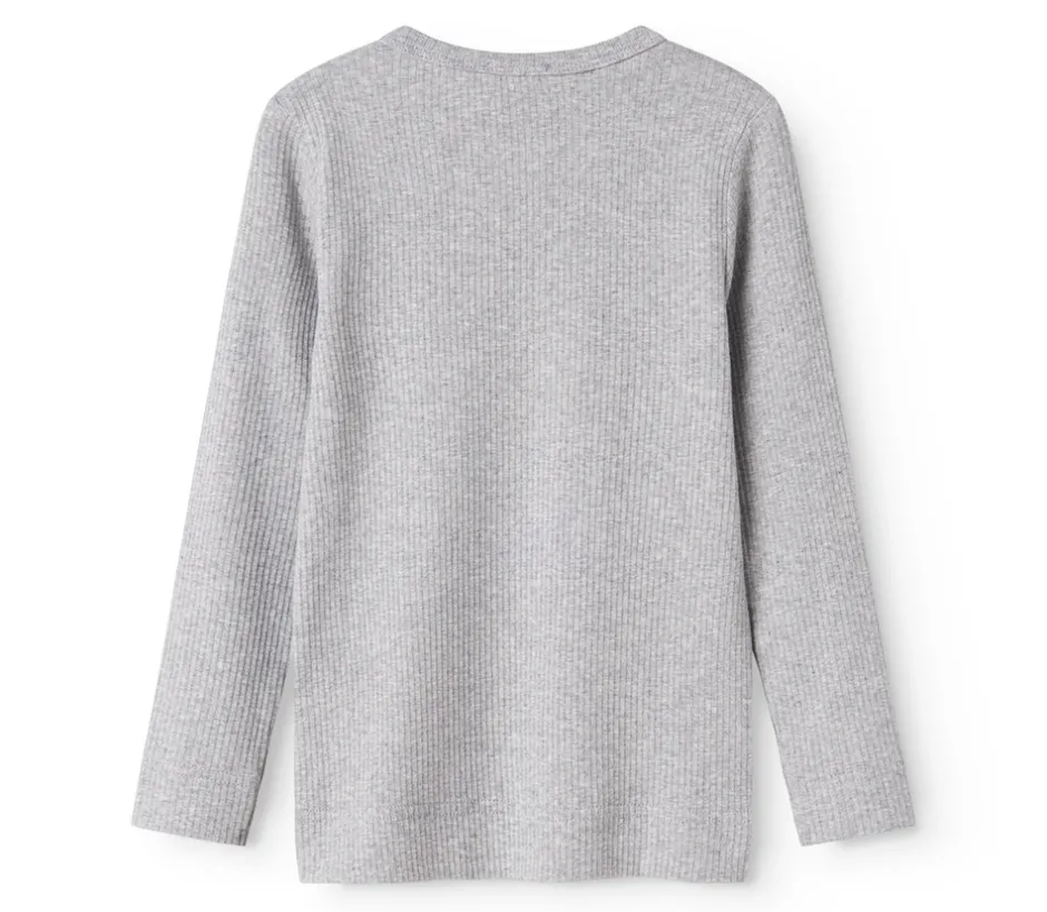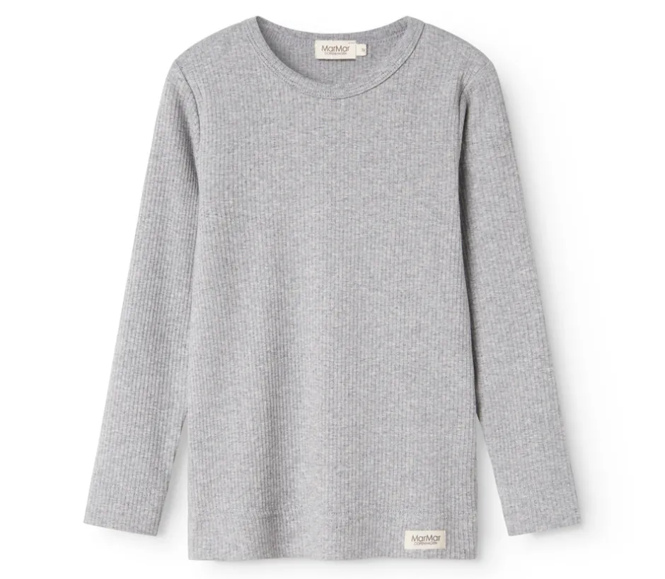 Denne klassiske langærmede T-shirt er lavet i ribstrikket modal med elastan og melangegarn, hvilket giver en blød, fleksibel og behagelig pasform. Den er ideel til hverdagsbrug og holder både form og farve – selv efter mange vaske.