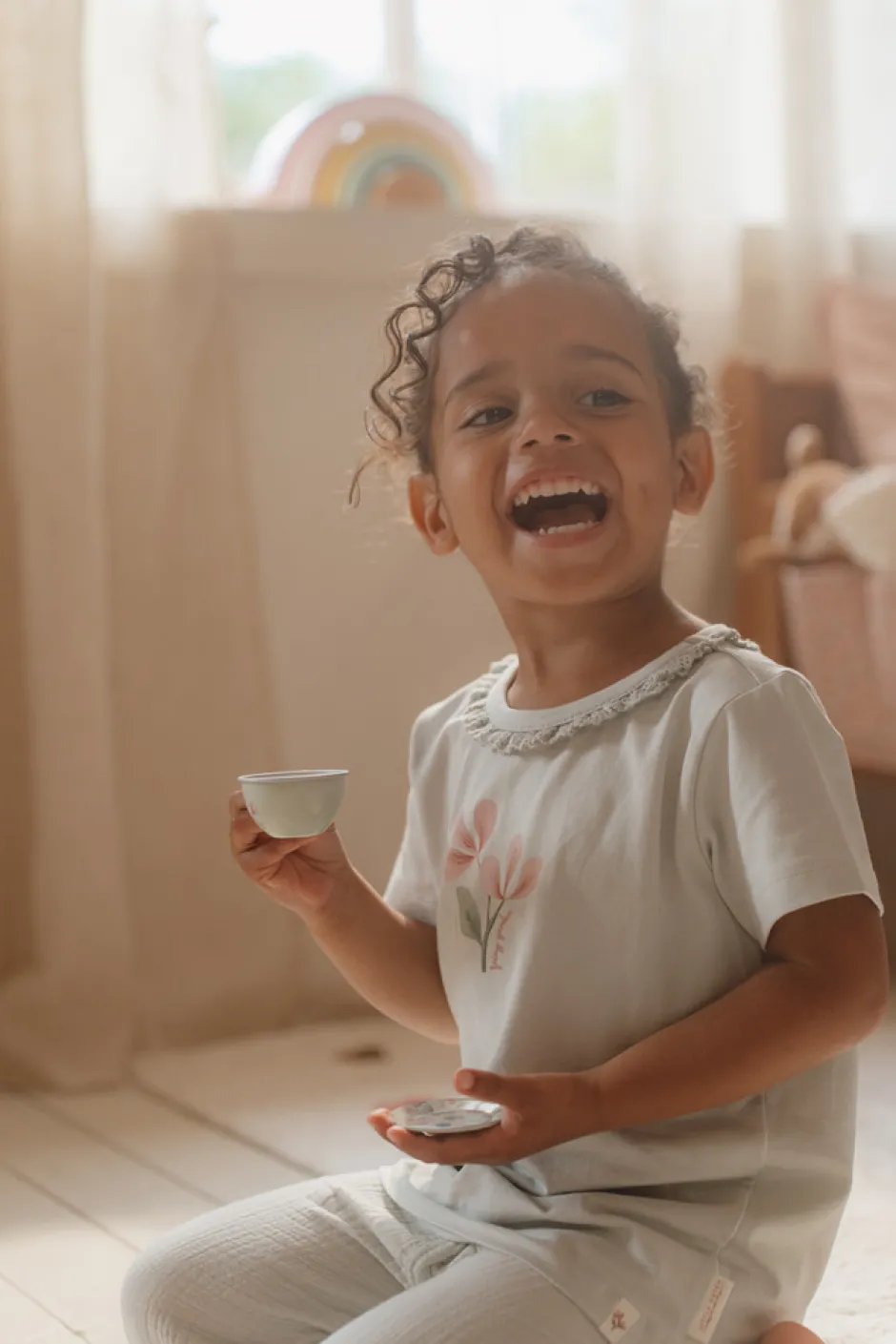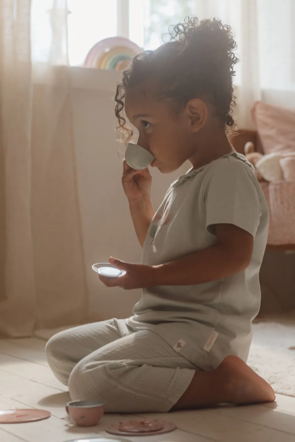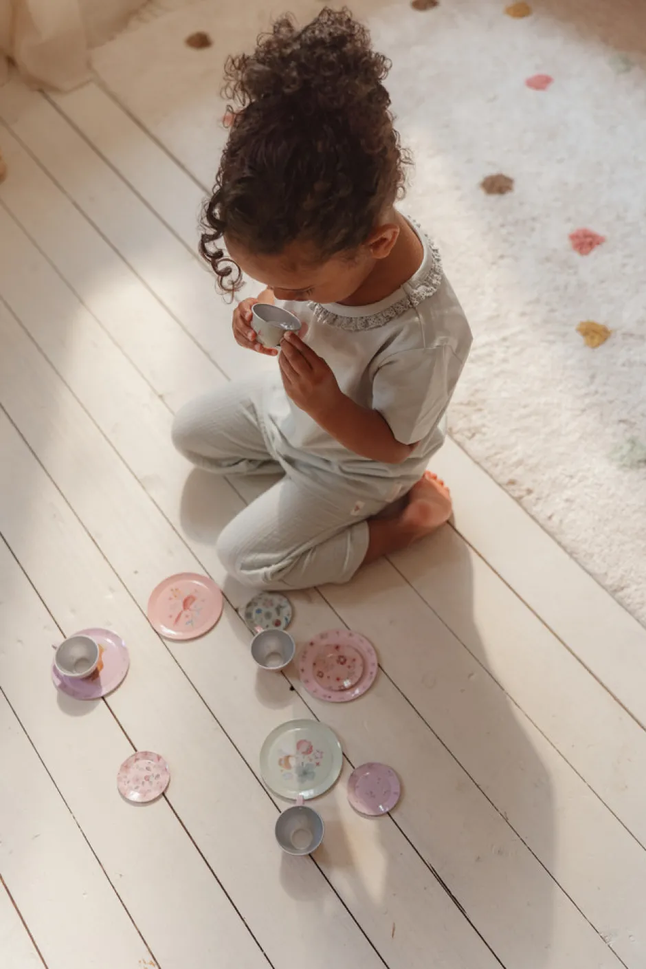 Invitér familien til et hyggeligt teselskab med dette charmerende tesæt fra Little Dutch. Sættet er dekoreret med de yndige illustrationer fra Fairy Garden-temaet og indeholder 4 tallerkener, 4 kopper med underkopper samt en tekande. Perfekt til at skabe magiske øjeblikke sammen.