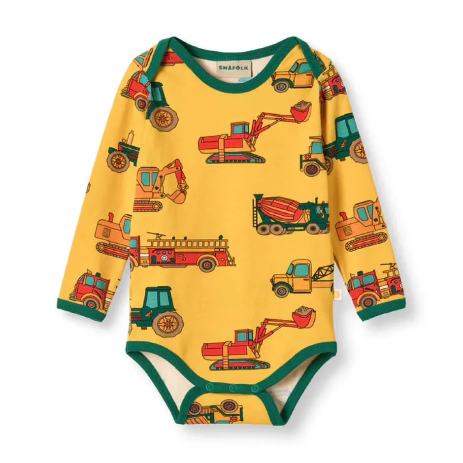 Giv næring til store eventyr med småfolk populære maskintema-print, perfekt til små byggere og bilentusiaster. Småfolks print er tegnet med fokus på glade farver, detaljer og historier. Småfolk bodyer er en god måde at tilføje personlighed til dit barns garderobe, samtidig med at dit barn kan føle sig komfortabel hele dagen.