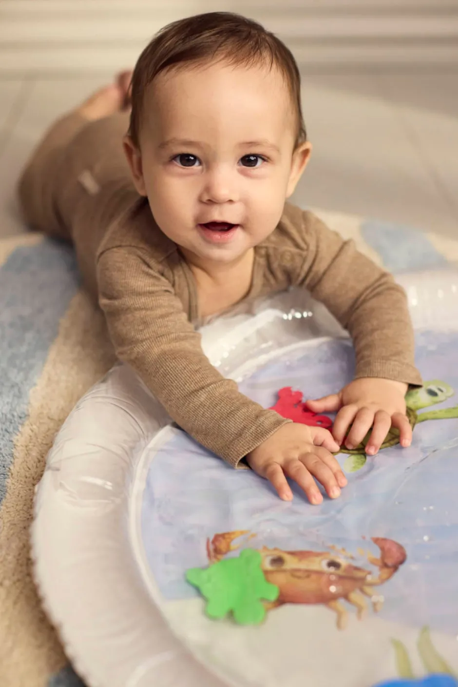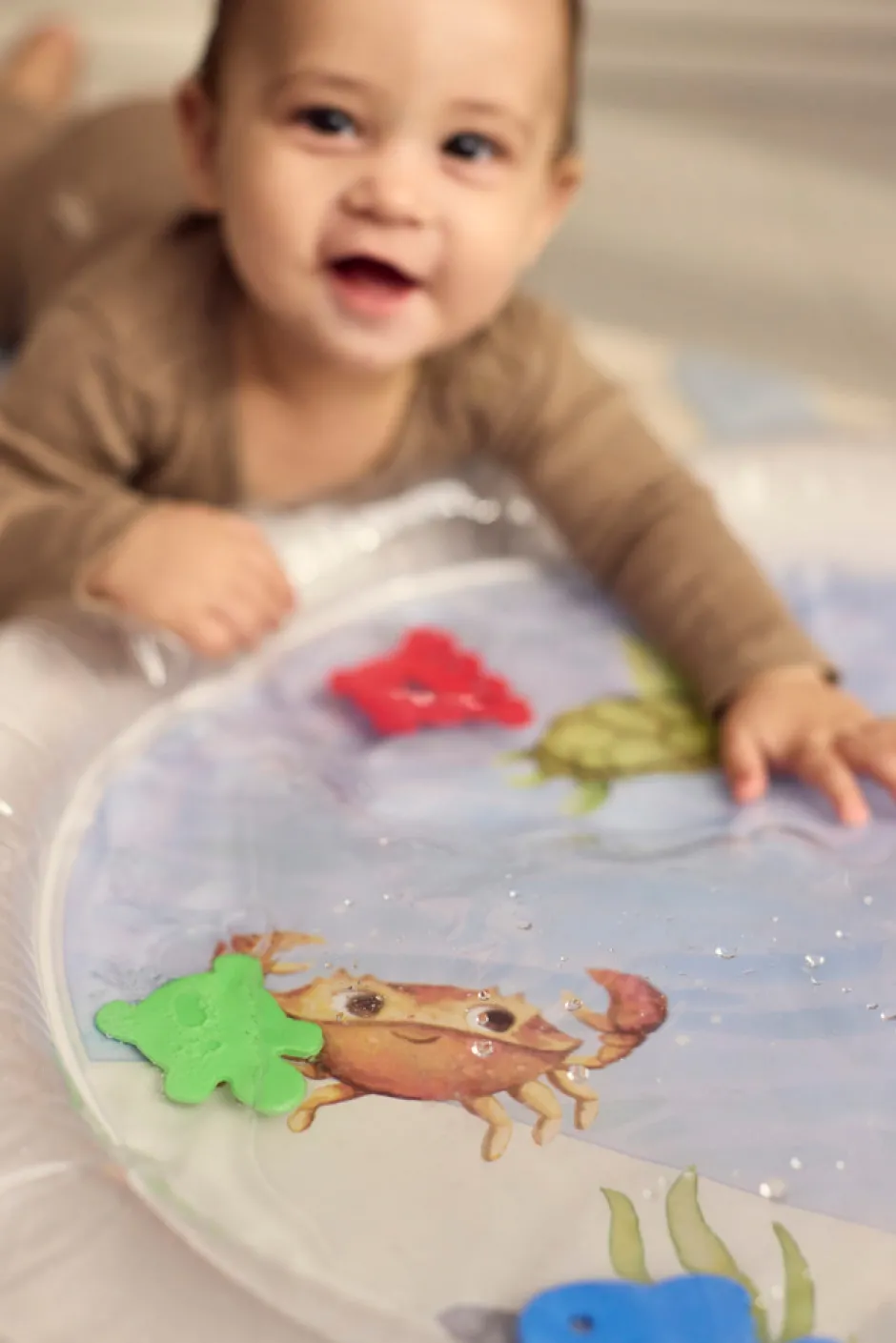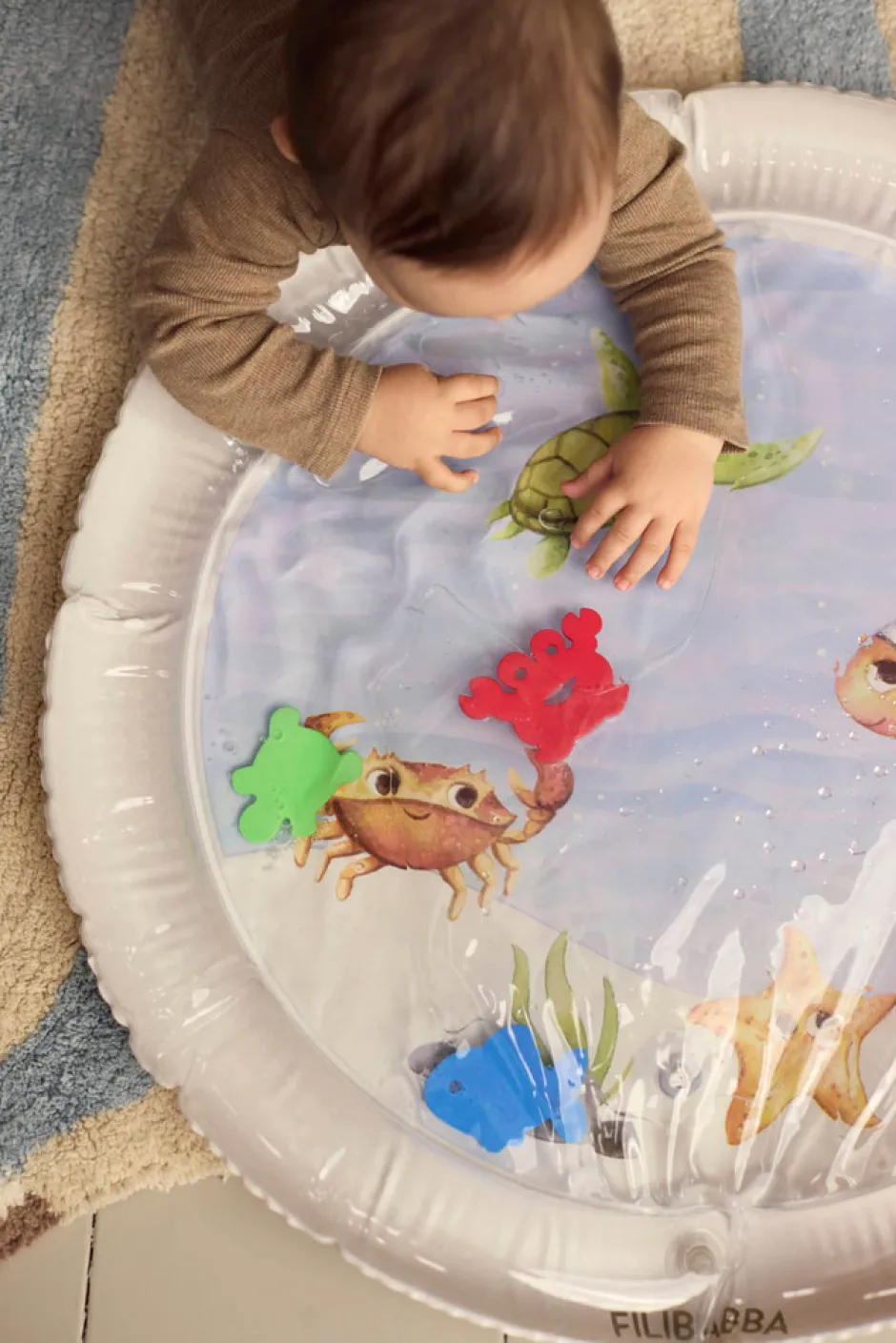 Forestil dig glæden ved, at dit barn opdager en verden under bølgerne. FILIBABBAs vandlegemadras inviterer babyer til et fortryllende undervandseventyr, hvor farverige havdyr svømmer gennem blide bølger. Det er et rum, hvor nysgerrigheden kan blomstre, og hvor mave-tid bliver en rejse fyldt med undren og opdagelse.Madrassen er designet med oppustelige kanter, der giver en blød og sikker overflade, mens den vandfyldte midte skaber en fascinerende sanseoplevelse. Den er nem at tømme for vand og folde sammen, hvilket gør den både praktisk og sjov – perfekt til daglig brug.Med de charmerende håndtegnede illustrationer, herunder skildpadden Tino, præsenterer madrassen fire fantastiske havdyr, der fanger dit barns opmærksomhed. Med en diameter på 65 cm er den ideel til mave-tid og gør hvert øjeblik til et hav af muligheder.Kort om mig:- Størrelse: Ø 65 cm – perfekt til mave-tid.- Indeholder 4 farverige havdyr, der fanger opmærksomheden og fremmer bevægelse.- Oppustelige kanter for en blød og støttende overflade.- Madrassen fyldes med vand.- Nem at tømme, opbevare og genbruge.