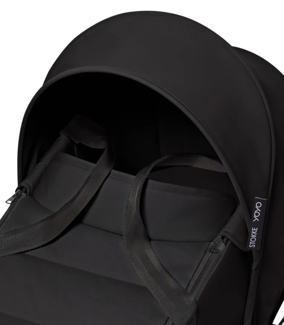 Liggedelen giver dig mulighed for at bruge klapvognen (tilkøb) fra fødslen. Dit barn vil hvile på en åndbar, ekstra hyggelig dobbeltmadras. YOYO liggedelen klikkes fast på YOYO³ stellet med et enkelt klik. Takket være det lette design kan den aftagelige liggedel nemt bæres i hånden, stilles på gulvet og sættes tilbage på klapvognen, når du går tur.