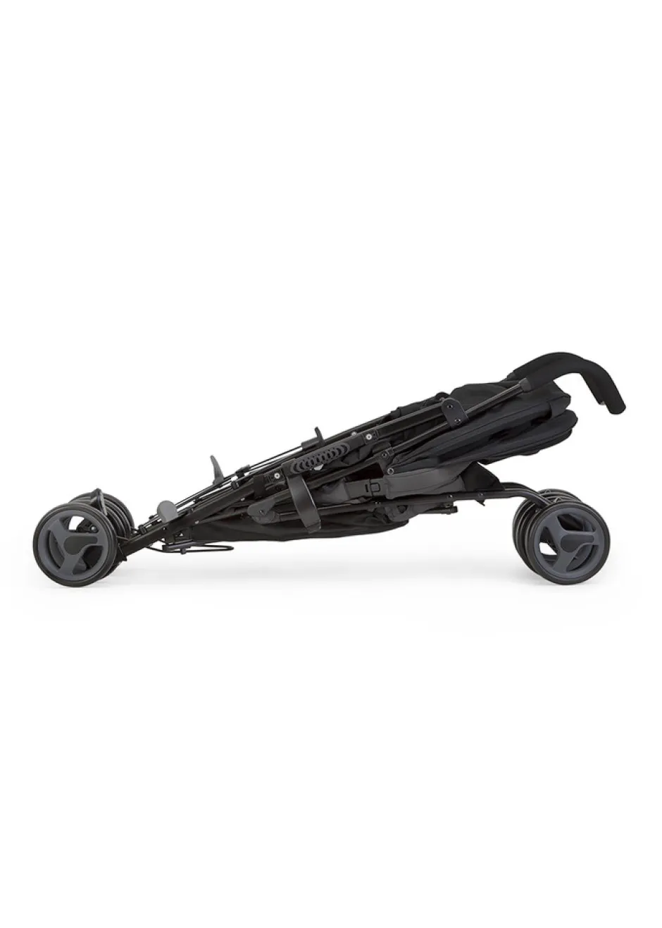 Ryggen kan ligges næsten vandret, og da fodstøtten kan justeres kan en lur sagtens tages i klapvognen. Sædet er godt polstret og integreret med en 5-punktsele, og har ekstra skulderpuder, så barnet spændt godt fast med komfort. Frontbøjlen kan fjernes helt, hvilket kan gøre det nemmere når barnet bliver lidt større og selv vil kravle op og ned. I kalechen er der en ekstra solskygge, så til solferien er barnet beskyttet mod solen, og håndtag polstret med skum er den behagelig at holde ved og køre. Når den klappes sammen bæres den nemt i håndtaget på siden, og med en vægt kun på 7,7 kg. er den let. Varekurven kan rumme mere end man tror, og er derfor god på ferie såsom hverdag.
