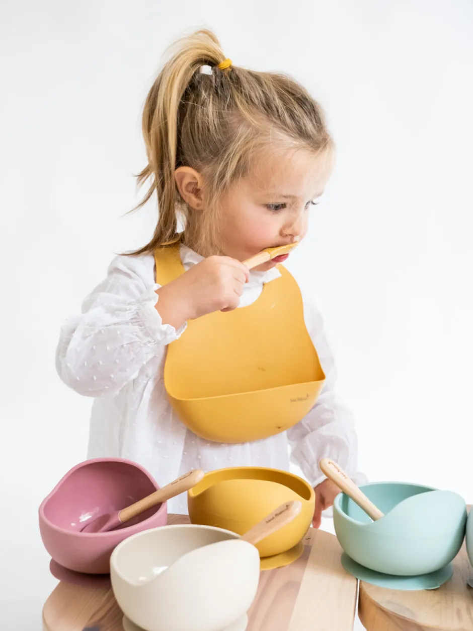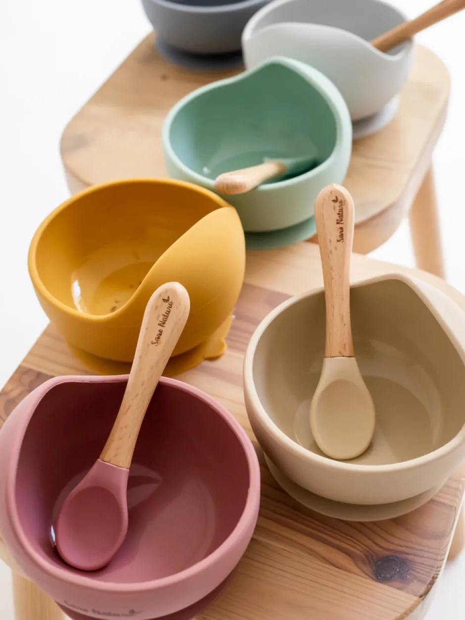 Saros “Nordic Wave” spisesæt er fremstillet af fødevaregodkendt silikone og bøgetræ, der minimerer risikoen for bakterievækst. Skålen har et praktisk og originalt bølgedesign, perfekt til at lære at spise med, hvilket gør det lettere at fylde hver ske og skubbe maden. Dette er bl.a. med til at fremme dit barns uafhængighed og selvtillid. Sættet består af en silikoneskål med sugekop og en silikoneske med bøgetræshåndtag. Begge dele tåler mikroovn og opvaskemaskine, men skeen bør vaskes i hånden med sæbevand. Vask med vand og sæbe før første brug, undgå slibende rengøringsmidler og kogning til sterilisering. Produceret i overensstemmelse med UNE-EN 14372 EU10/2011-regulativet.