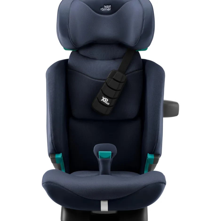 - Autostolen beskytter dit barns nakke ved en frontal kollision med den stødabsorberende XP-Pad i skum. I en ulykke reducerer den en brat fremadrettet hovedbevægelse med op til 30%* og forhindrer, at dit barns hage rammer brystet.