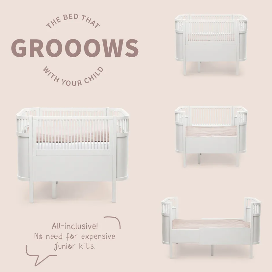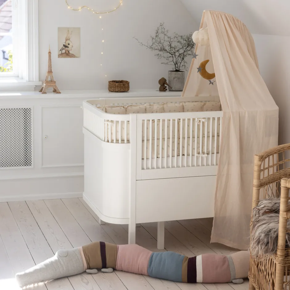 Sebra Sengen Baby & Jr. vokser og udvikler sig sammen med dit barn, og giver trygge rammer så barnet kan sover trygt og godt. Ikke kun sengen udvikler sig, men barnet har også her mulighed for at vokse og udvikle sig. Sengen er en generationsseng, som kan gå i arv – fra barn til barn, fra familie til familie. Et stykke dansk designhistorie og en tryg og sikker udtræksseng til baby og junior. Sebra Sengen kan anvendes fra nyfødt hvor sengens bund er hævet til midten, således baby i de første måneder er lettere at løfte op fra sengen og lægge i sengen. Den hævede sengebund gør det nemmere at få et godt og sikkert greb om spædbarnet når det skal tages op og samtidig kan forælderen bedre støtte babys baghoved og nakke, når baby skal lægges i sengen, fordi afstanden til sengebunden ikke er så lang – det er både sikkert for baby og bedre for forælderens ryg. Når baby vokser til en lille spilop der begynder at gøre tegn til selv at kunne komme op i siddende eller kravlende position sænkes sengens bund. Husk madras og andet tilbehør så du skaber et dejligt sover miljø til barnet.