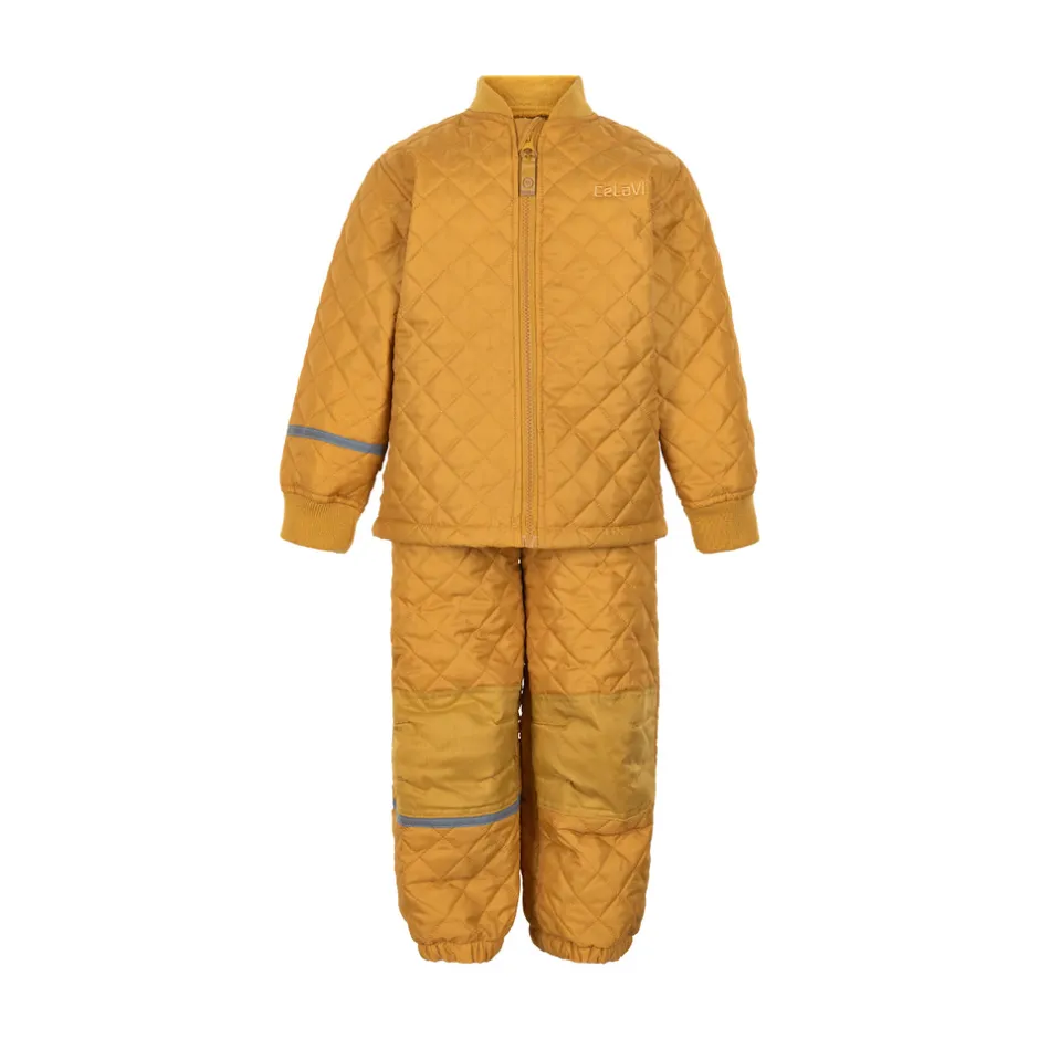 Til dage, hvor det er for varmt til vintertøj og for koldt i en tynd sommerjakke, er termotøj fra CeLaVi perfekt. Kan bruges alene eller indenunder regntøjet for at give lidt ekstra varme. Termotøjet er ikke vandtæt, men på knæ og bagdelen er der tilføjet et lag Oxford nylon, som er imprægneret med en gennemsigtig PU-coating på bagsiden, der gør disse udsatte områder mere slidstærke og vandafvisende.