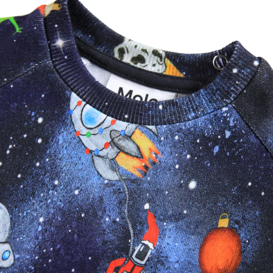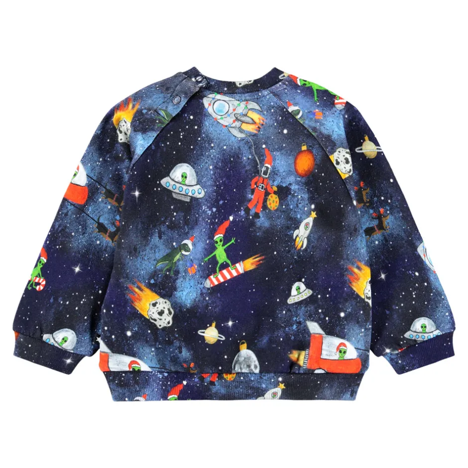 Sweatshirt i blød økologisk bomuldsjersey med raglanærmer og ribkanter ved ærmer og hofte. Den runde halsudskæring har to praktiske trykknapper i nakken, som gør den nem at tage af og på.