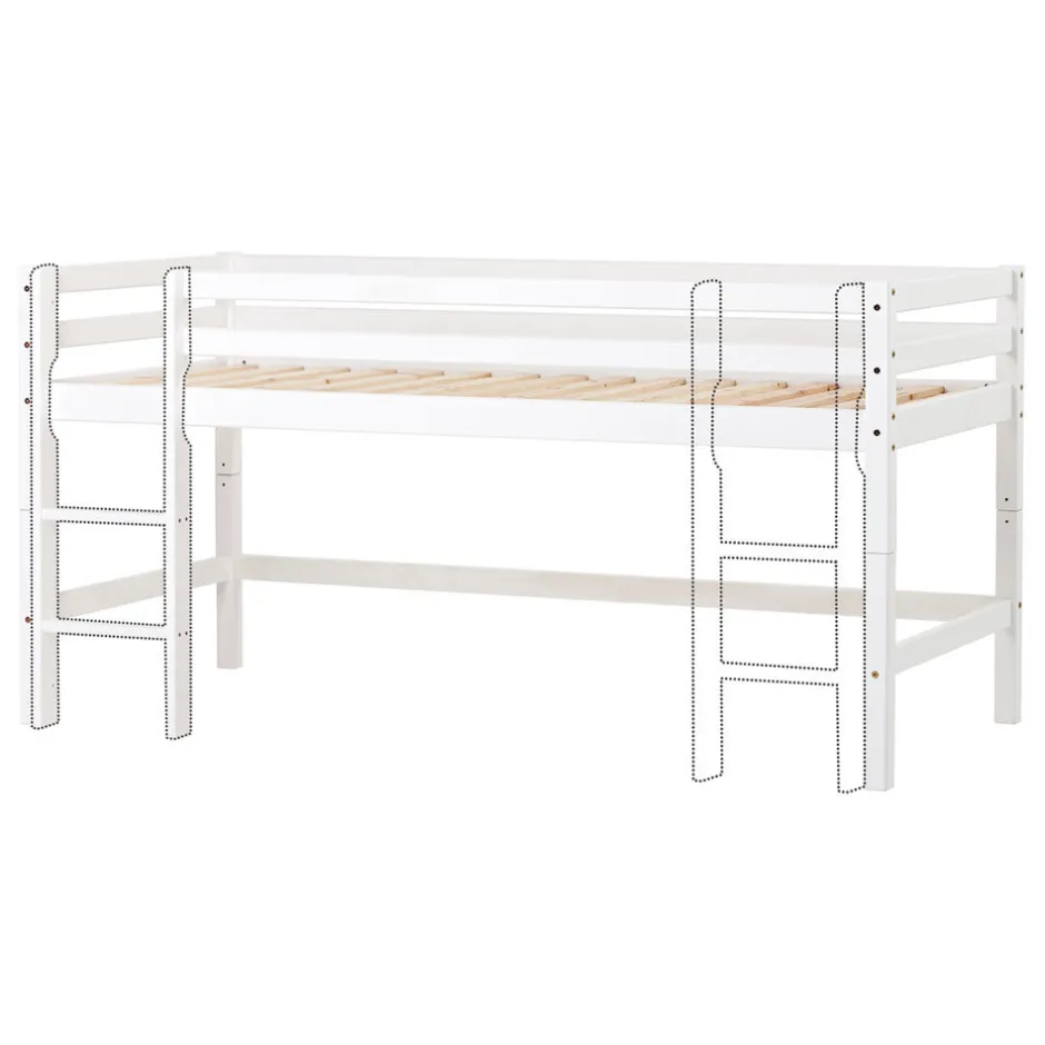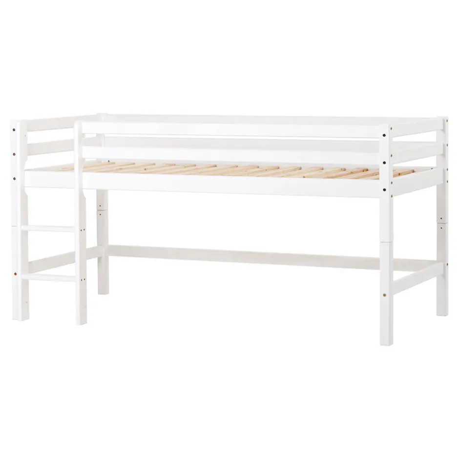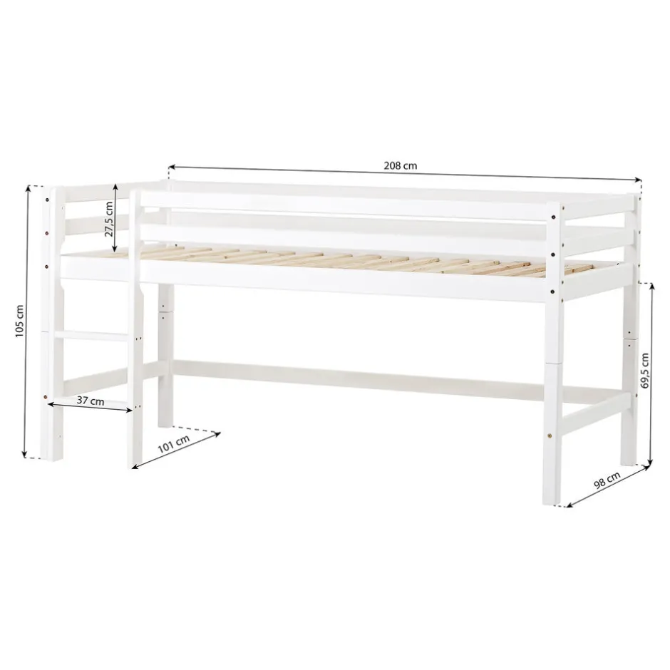 Med denne seng fra Hoppekids får man både ECO Dream juniorsengen og et modul så den kan bygges til en smart og sej halvhøj seng. Sengen giver mere gulvplads til leg og mulighed for at lave en hyggelig hule under sengen. Med en størrelse på hele 90×200 cm. bliver Hoppekids juniorsengen en god base til barnet for en god og tryg nattesøvn. Denne fine og enkle halvhøj juniorseng fra Hoppekids giver mange muligheder og er derfor mere end bare en seng. ECO Dream halvhøj seng er en smart seng til dem der virkelig ønsker at have lege eller opbevaringsplads under sengen. Hvis behovet opstår hvor der ikke er brug for en halvhøj seng, er det lige til og enkelt at lave den om til en juniorseng – sengen er nemlig delbar. Den store størrelse 90×200 cm giver masser af plads til at vokse på og barnet kan bruge sengen helt indtil de er klar til et teenageværelse. Størrelsen giver samtidig mulighed for at en forælder kan ligge i sengen, fx hvis der skal læses godnathistorie. Med mulighed for disse løsninger, betyder det at sengen vokser med barnets og dets behov. Det håndsyede forhæng fra Hoppekids skaber en magisk og eventyrlig verden lige midt i børneværelset. Når forhænget monteres på sengen, er det ikke længere en seng, men en hyggelig hule med det fineste print af Ole Lukøje, hvor det er fantasien, der bestemmer. Det søde univers fra Ole Lukoie inviterer dit barn på eventyr i en spændende verden fyldt med fantasifulde historier. Forhænget skaber også en hyggelig hule under den halvhøje seng, som er perfekt til leg eller når dit barn har brug for en lille pause fra resten af verden. Dekorér eventuelt hulen med en madras, tæpper, puder, lyskæder og andre hyggelige sager.
