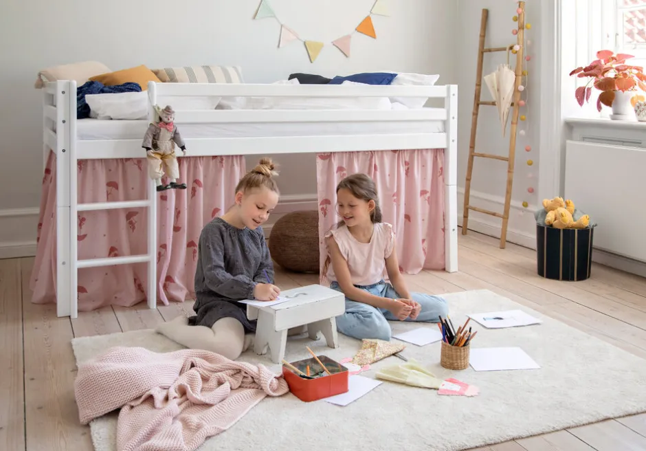 - Forhænget passer til halvhøje & køjesenge med madrasstørrelse 70×160, 70×190 og 90×200 cm.