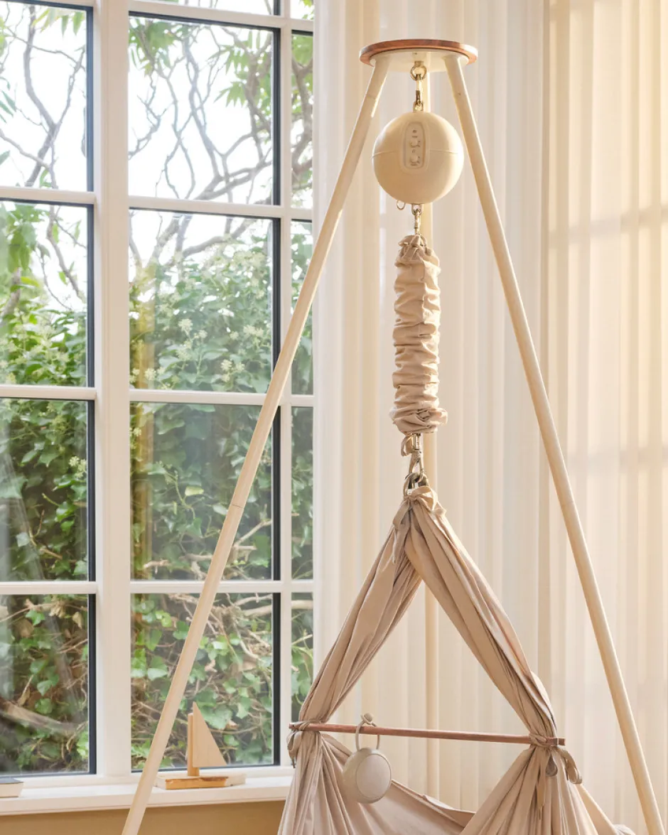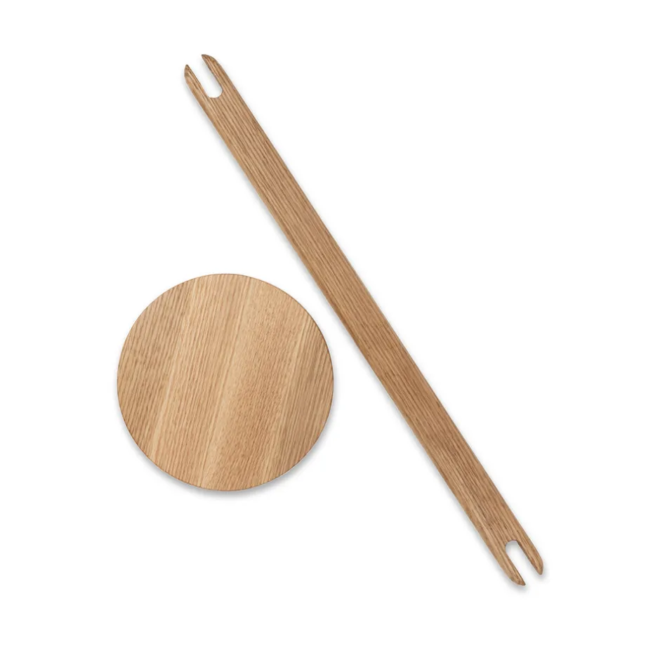 Egetræssættet er et stilfuldt alternativ, designet til dig, der foretrækker de lysere toner af nordisk eg i dit hjem. Dette kit inkluderer en topsamling til Moonboons stativ og en tværstang til slyngevuggen, begge udført i smukt egetræ.
