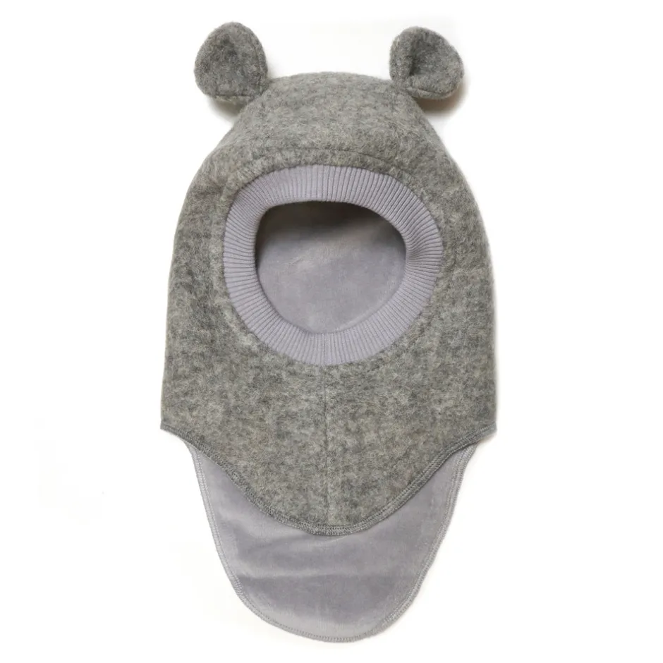 Smuk Huttelihut elefanthue i meleret bomuldsfleece. Huttelihut elefanthuen har en rund hovedform med to søde ører i toppen. Elefanthuen består af 2 lag. I ansigtsåbningen er der en ribkant, og elefanthuen har et praktisk split-design med ekstra længde bagpå.