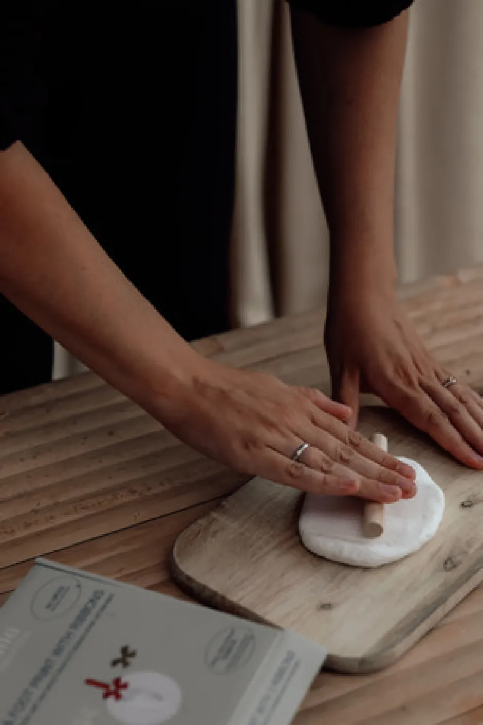 Indhold: 1 x letvægts-selvhærdende ler, 1 x trærulle, 1 x PP rulle, 3 x silkebånd